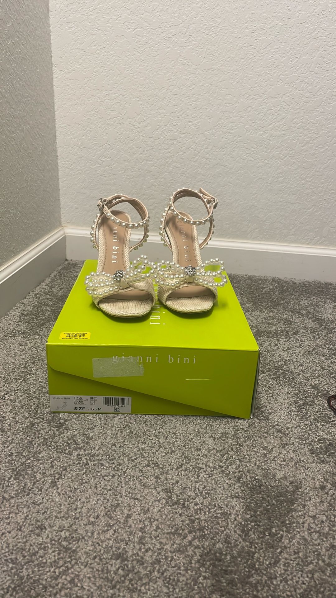 cream colored pearl ankle strap, Gianni bini heels size 6.5 box included