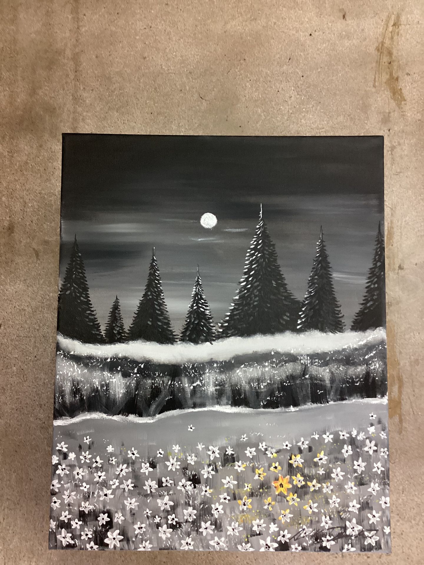 Canvas size : 8x10 Perfect for small spaces but still makes an impression even tho it’s a darker painting. Come on by and check it out ! Pricing is Negotiable Available at C and S