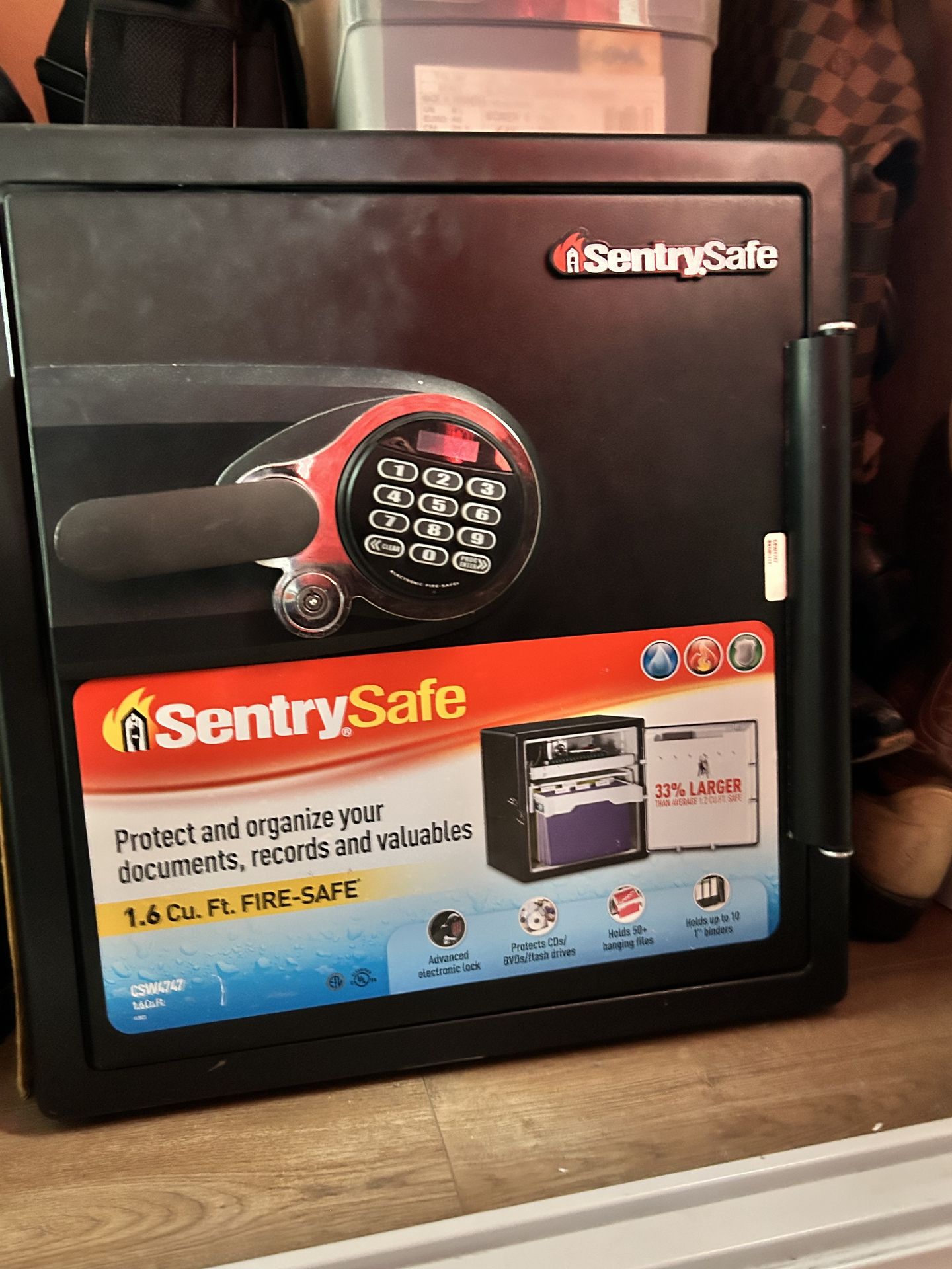 In great condition Sentry electronic Key pad for sale. Maybe bolted into the floor also. Dimensions: 1.6 cu ft, 20” ht/18” wide/17” deep. Instructions included.