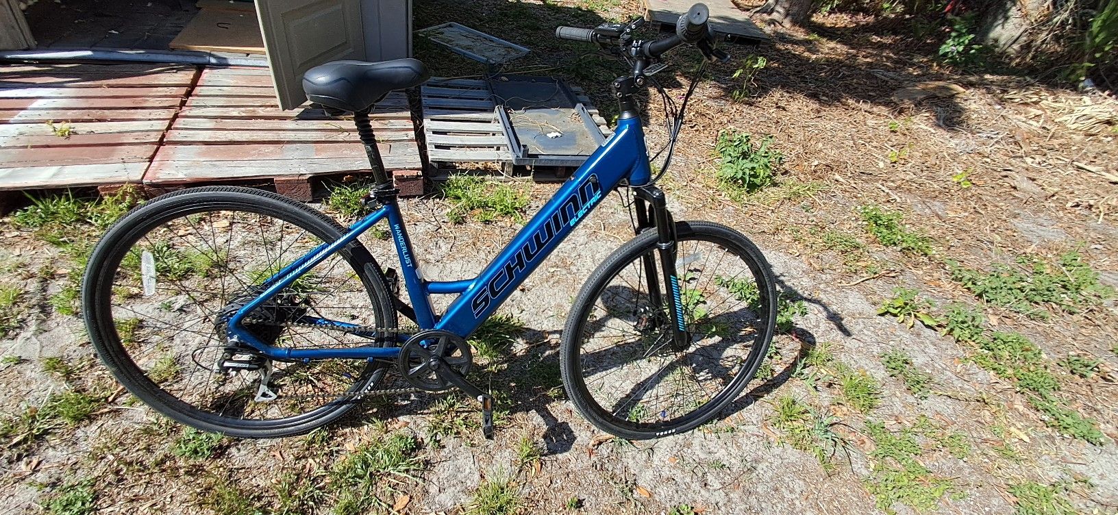I've had this ebike maybe a month just not what I wanted. It might have 50 miles on it. No ding scratches or dents the tires still have the rubber things on them. I paid a little over $1,000 for it brand new I'll let it go for $550 OBO.