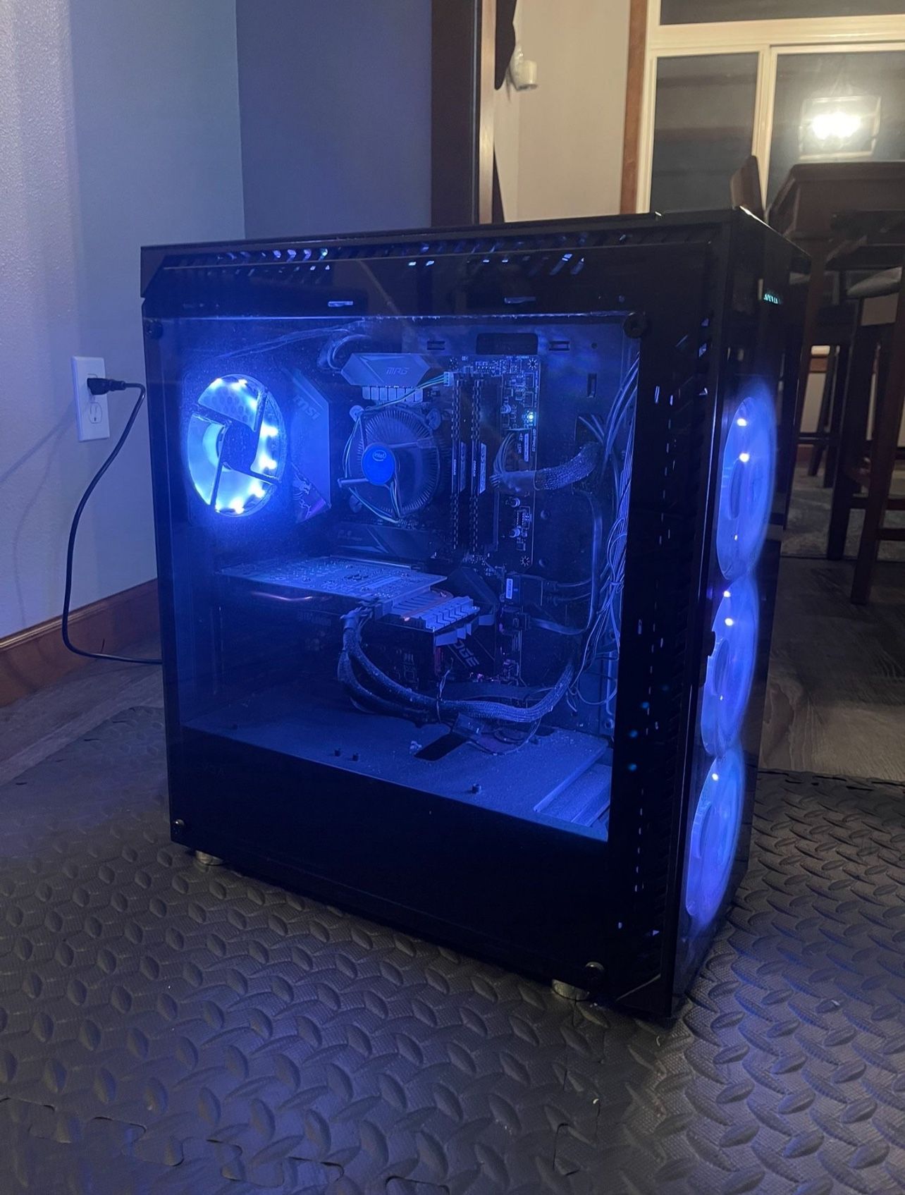 - Intel i5 11th 11600KF gen processor - 1660 Gefore GTX graphics card - 32GB RAM 3600 MHz - 500gb SSD - M.2 1TB SSD - 850W Bronze Power Supply - MPG Z490 motherboard - Apevia Trinity Case I also have a mouse, keyboard, and two monitors separately listed. Dm for prices.