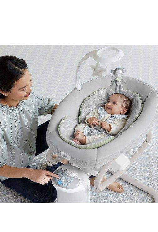 Graco Soothe My Way Baby Swing & Rocker — Excellent Condition - No stains! No wear /tear!! Gently used Graco Soothe My Way swing with a removable rocker can be used for 0-8 months babies. This 2-in-1 design lets you use it as a soothing swing or move the seat around the house as a rocker. It was super helpful when putting babies to sleep. Features: 1. 16 soothing motions (8 motions in 2 directions) 2. 6 swing speeds + 2 vibration settings Multi-directional seat — face front, left, or right 3-position recline for baby’s comfort 3. 5-point safety harness Soft, plush seat with removable body support 15 calming sounds (10 melodies + 5 nature sounds) 4. Adjustable toy bar with 2 soft toys Includes AC adapter (no batteries needed) Great for helping baby relax, nap, or wind down. Works perfectly — clean and ready for the next family. From Smoke-free and pet-free home. Bought this swing from Target in March 2025 for $250.