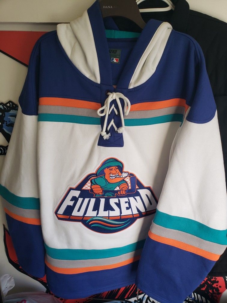 Here is an awesome FULLSEND hard to get Hockey Jersey this thing is in great condition used only once for a photo shoot. Sz XL Supreme Bape Hype beast Street wear