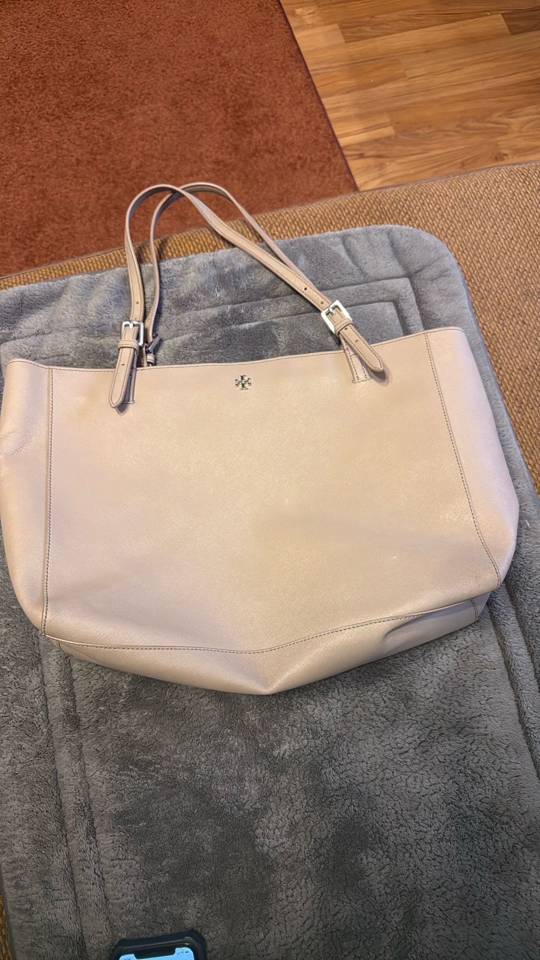 Has some distress in the leather on the lower portion of bag—see photo. It is not really noticeable. No stains in interior. Mstr br clos top shelf