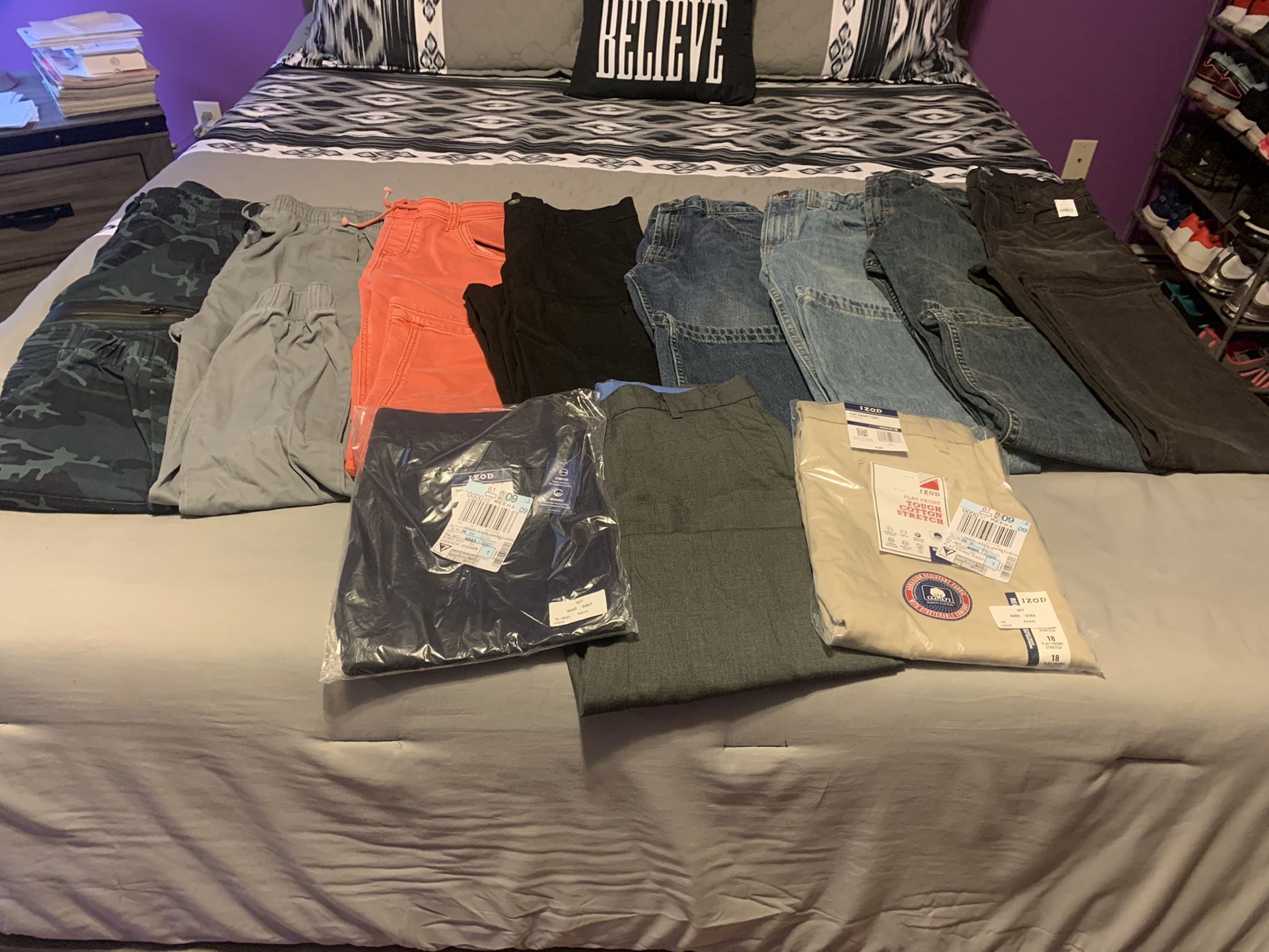 Boys pants size 18. Two pair still in package never worn. All 11 pair for $60 or $6 a pair.