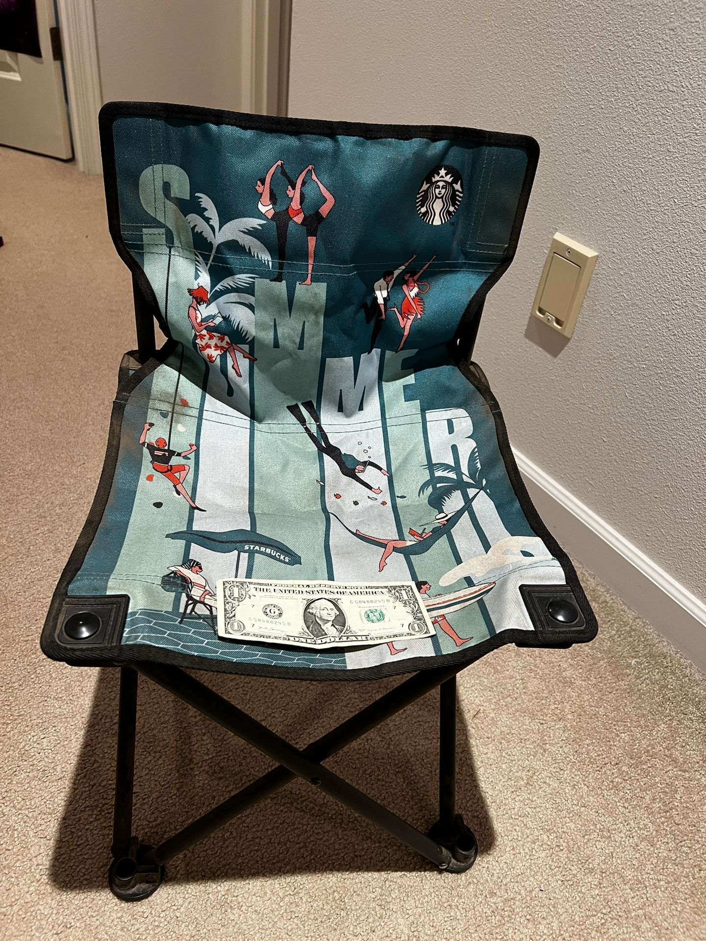 Cute little Starbucks camping chair. I will clean it up before purchase but it’s in perfect condition! Limited edition Starbucks Summer. Shoot me a message if interested