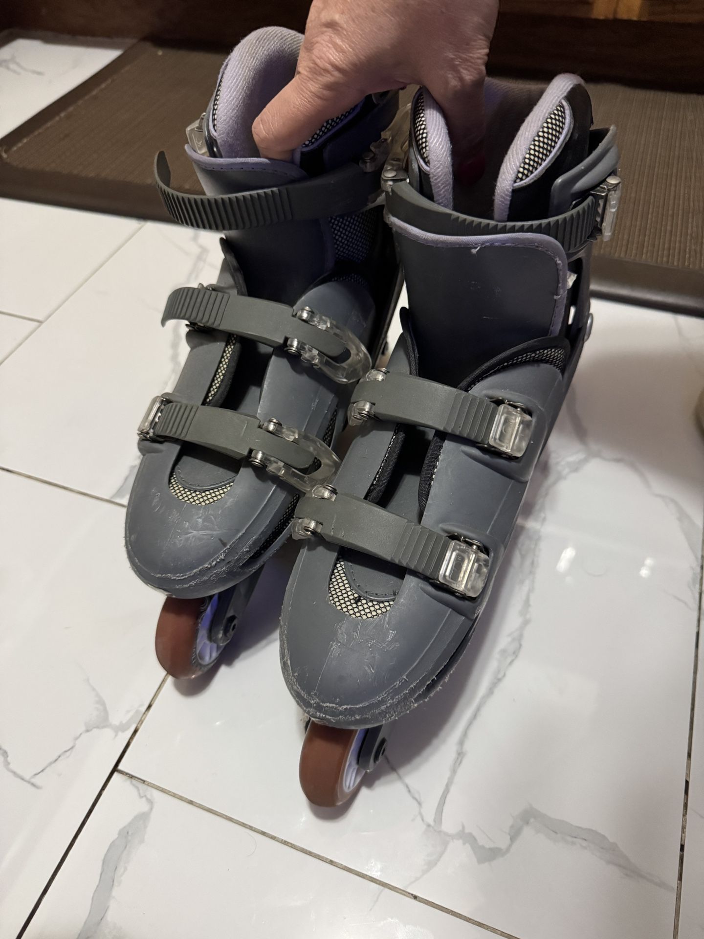 Description: Take your skating experience to the next level with these adjustable inline skates. Designed for both beginners and seasoned skaters, these skates offer: • An adjustable size range from 6 to 9, ensuring a perfect fit for growing feet or shared use. • Durable gray construction with secure buckles and straps for added stability and safety. • Smooth rolling wheels and reinforced frames for a comfortable and reliable ride. • Mesh panels for breathability and a cushioned interior for maximum comfort. These skates are in good condition and ready for countless hours of fun on the streets or skating rinks. Ideal for recreational or fitness skating!: Take your skating experience to the next level with these adjustable inline skates. Designed for both beginners and seasoned skaters, these skates offer: • An adjustable size range from 6 to 9, ensuring a perfect fit for growing feet or shared use. • Durable gray construction with secure buckles and straps for added stability and safety. • Smooth rolling wheels and reinforced frames for a comfortable and reliable ride. • Mesh panels for breathability and a cushioned interior for maximum comfort. These skates are in good condition and ready for countless hours of fun on the streets or skating rinks. Ideal for recreational or fitness skating!