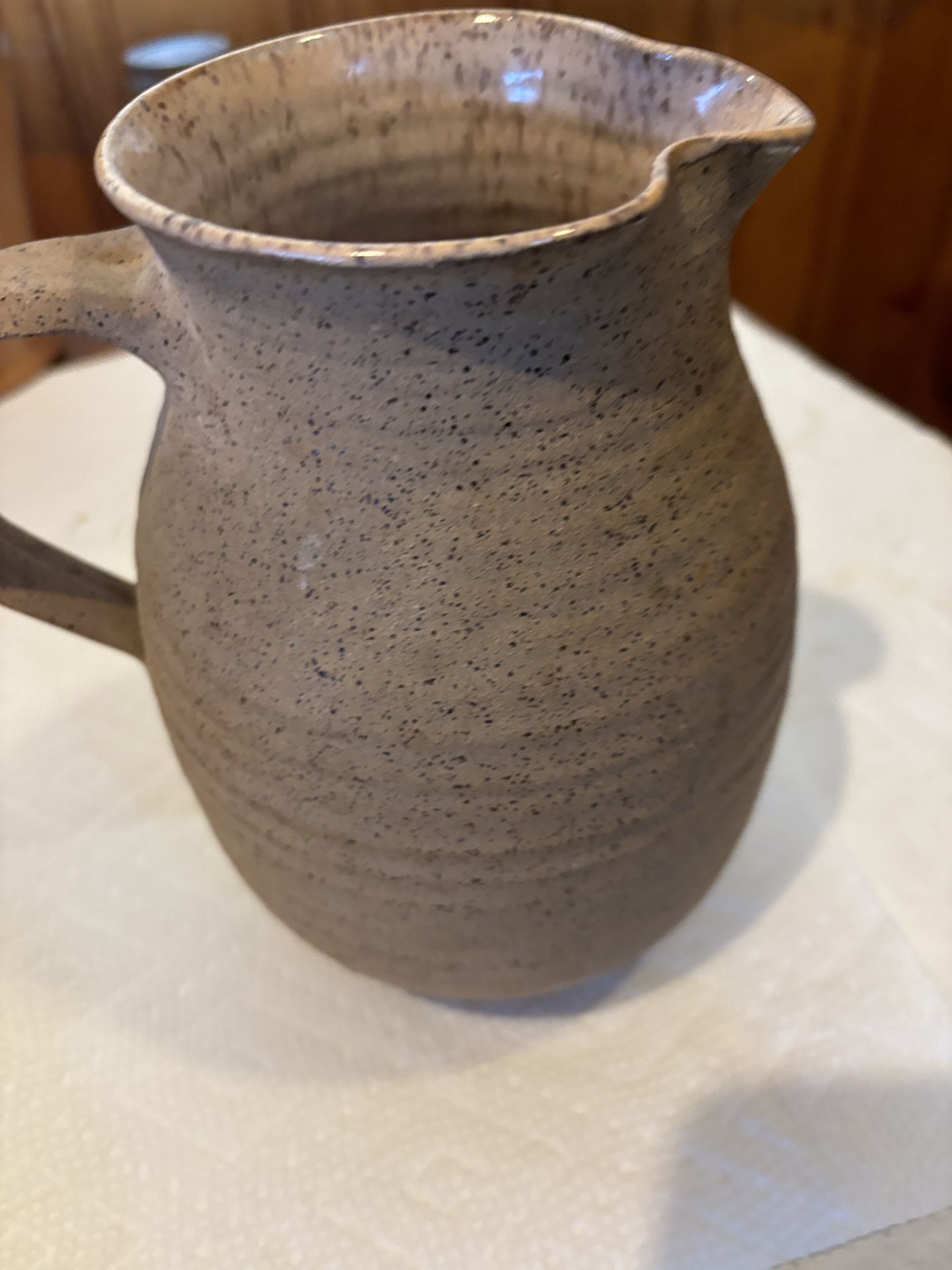 I have checked and do not see or feel any imperfections.a beautiful 8x7” water pitcher .the pitcher made by Supermud Pots.a neutral light color that could sit anywhere.please feel free with any questions.pick up in Winthrop.