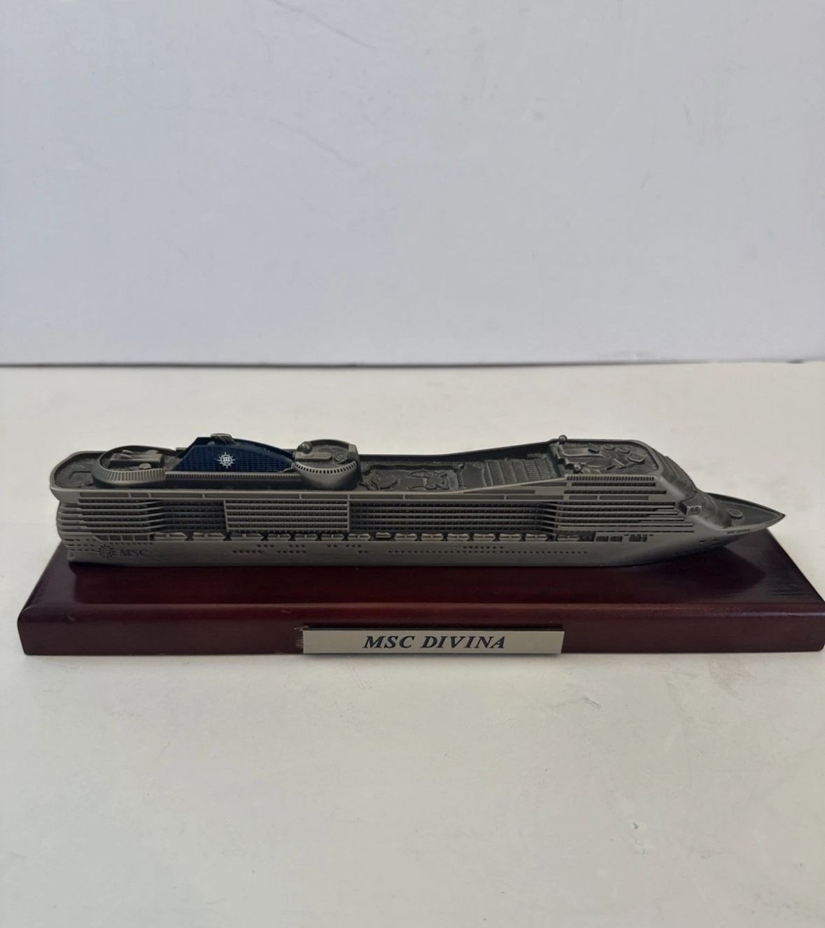 MSC Divina Cruise Ship Model Pewter Statue w Wood Base 11” Inch Excellent Cond