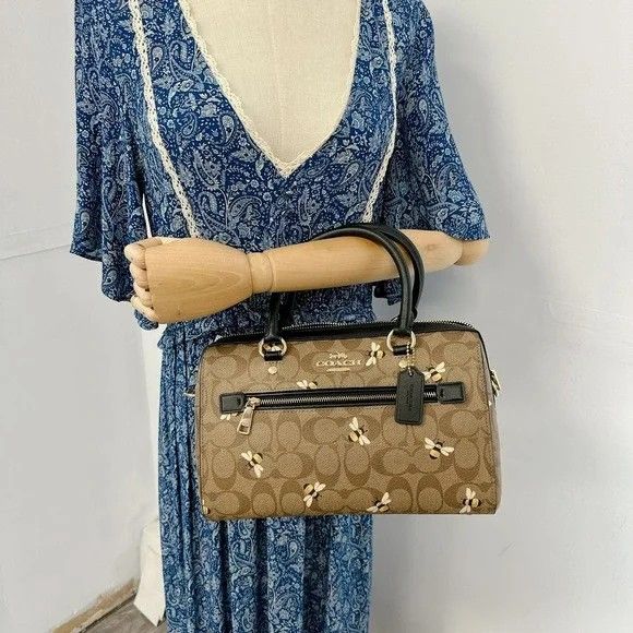 Product Details Signature coated canvas and smooth leather Inside zip and multifunction pockets Zip closure, fabric lining Handles with 4 1/4" drop Outside zip pocket Detachable strap with 23" drop for shoulder or crossbody wear Four protective feet at base 10 1/2" (L) x 6 1/4" (H) x 5 1/2" (W) Style No. C8591 No bargains or trade-ins. Thank you for your business!