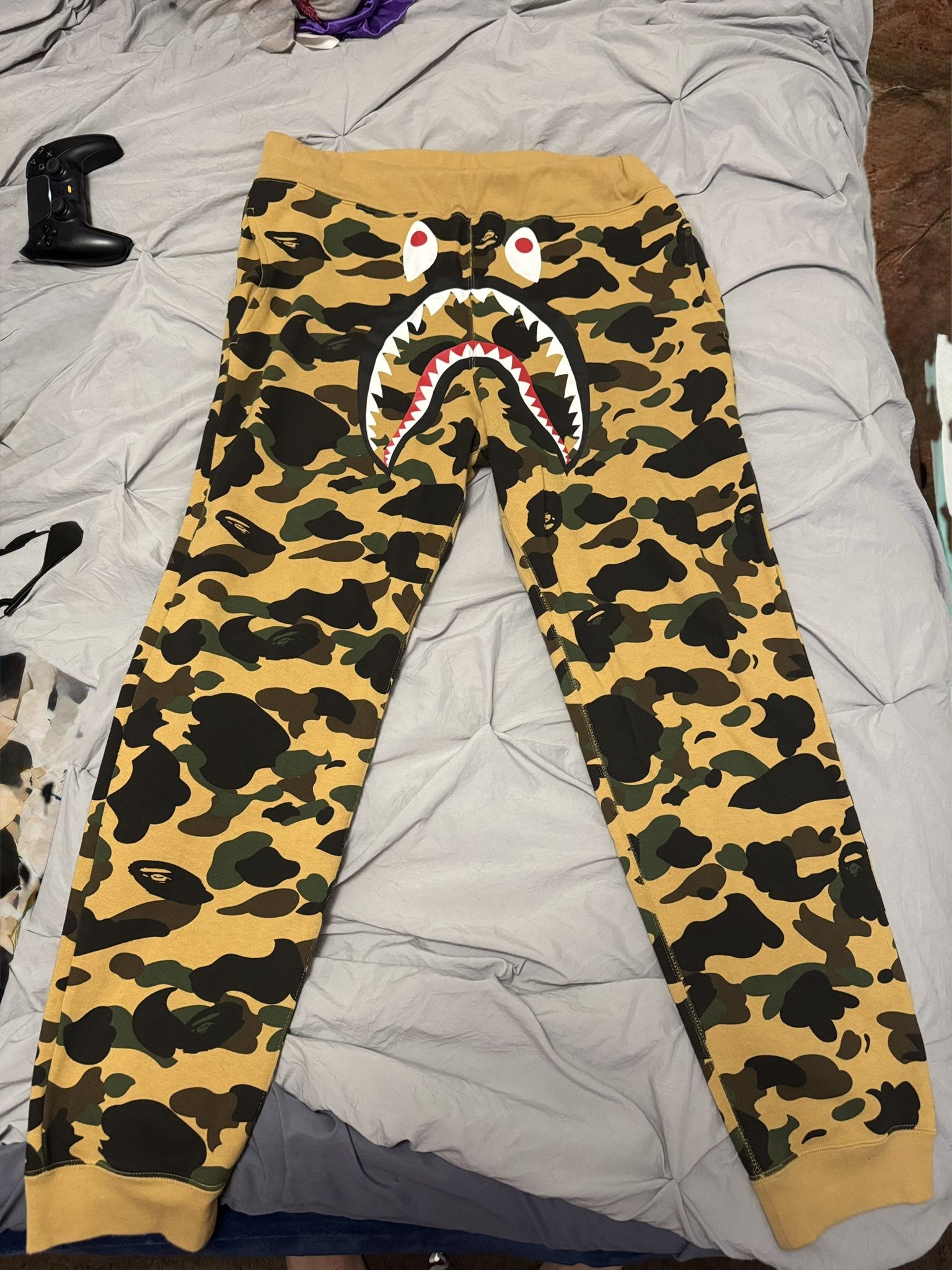 Fits like XL ,had these in my closet I don’t got the bape bag ,The shark print is phenomenal no chips for being old ,always dry cleaned ,