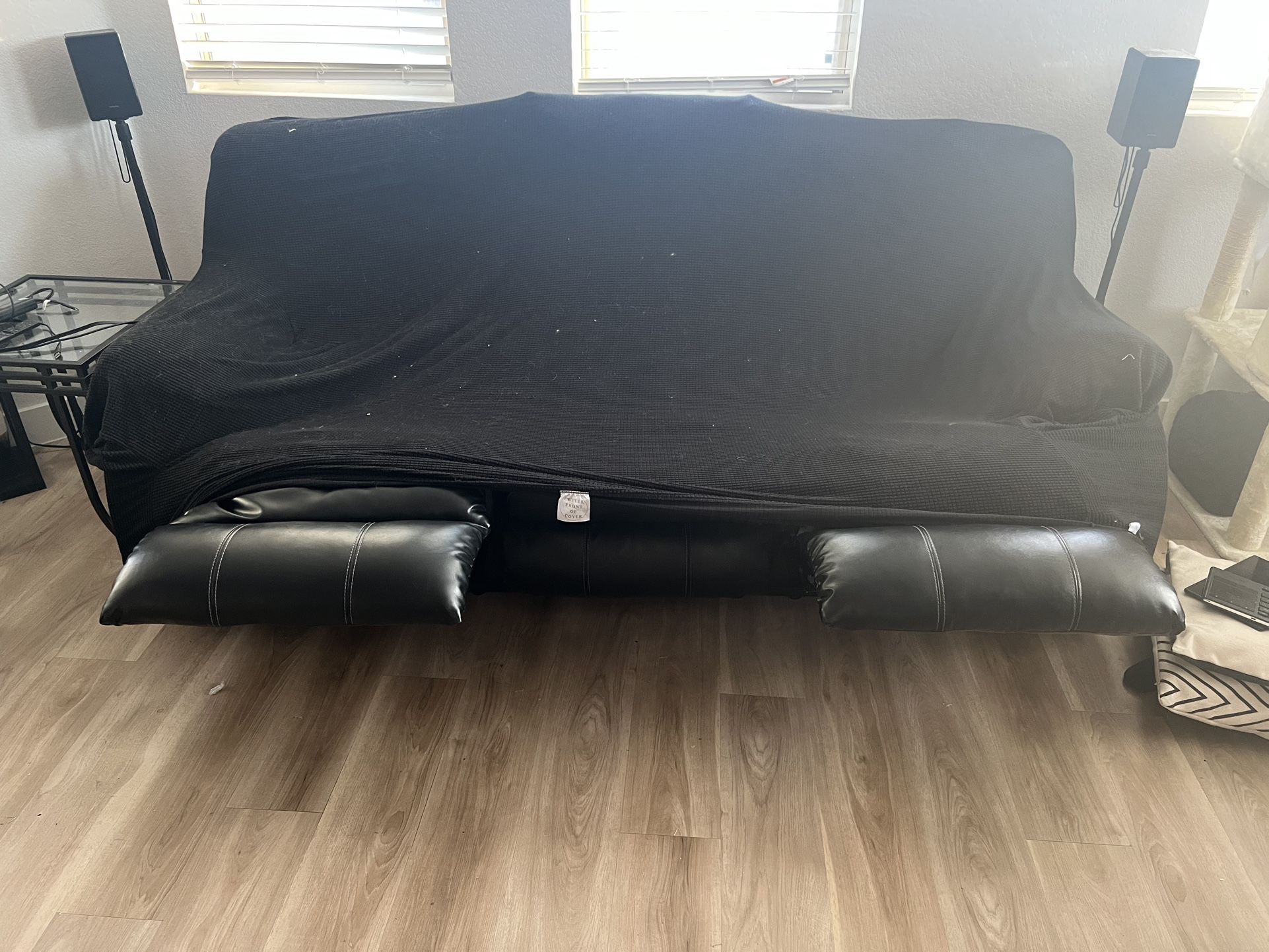 I am trying to sell this 3 seat recliner (only 2 seats recline). This couch is in amazing condition, I have always had a couch cover over it during use so there are no stains and the leather is pristine. I am upgrading to a 2 piece sectional so I thought I’d put this on the market prior to purchasing. This is a great couch, originally from the roomstore, I purchased it for 800 originally. Couch fully reclines no issues what so ever. The couch reclines really far back and it is also sleepable too.