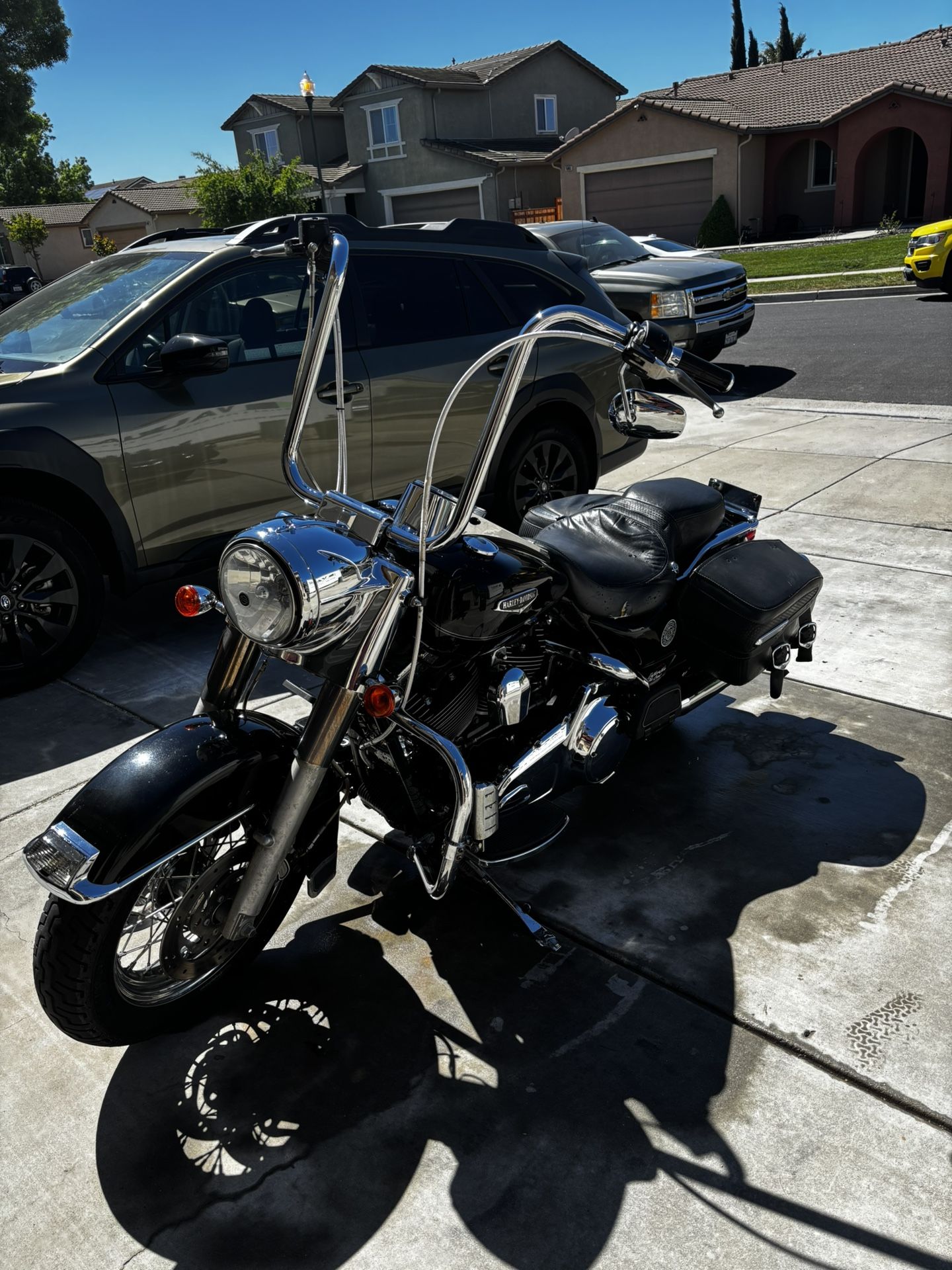 Looking to sell my Harley. Don’t really want to but I’m trying to get me a Mustang. She runs strong, could use some love as i don’t ride it as much as I’d like. Turns over only has 51k on odometer. Could use some new break cables and possibly a new starter they’re just old. Everything on the bike is OG from 07. Comes with reinhart exhaust and 20” ale hangers. Will throw in new set of handle bars, full leather vintage travel pack in excellent condition, battery tender for when you’re not riding and phone mount for the tank. Asking 5k also open to trade for mustang or foxbody v6-v8 manual