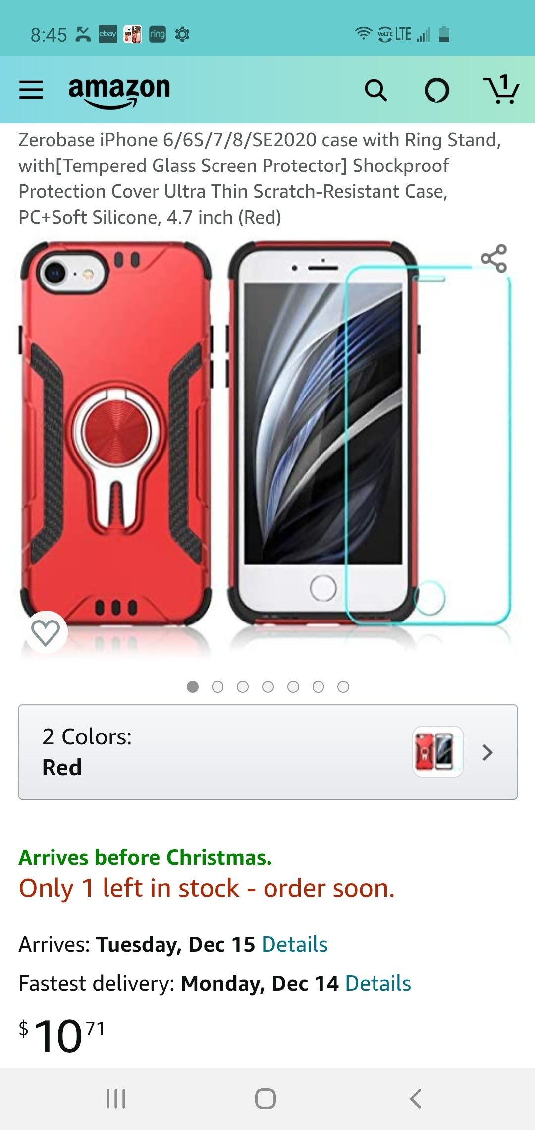 Zerobase iPhone 6/6S/7/8/SE2020 case with Ring Stand, with[Tempered Glass Screen Protector] Shockproof Protection Cover Ultra Thin Scratch-Resistant Case, PC+Soft Silicone, 4.7 inch (Red)
