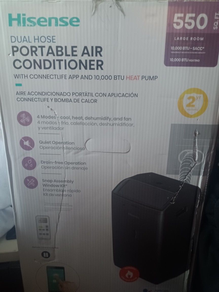 Dual hoses portable air conditioner with Kinect live app and 1000 BTU heat pump brand new never opened