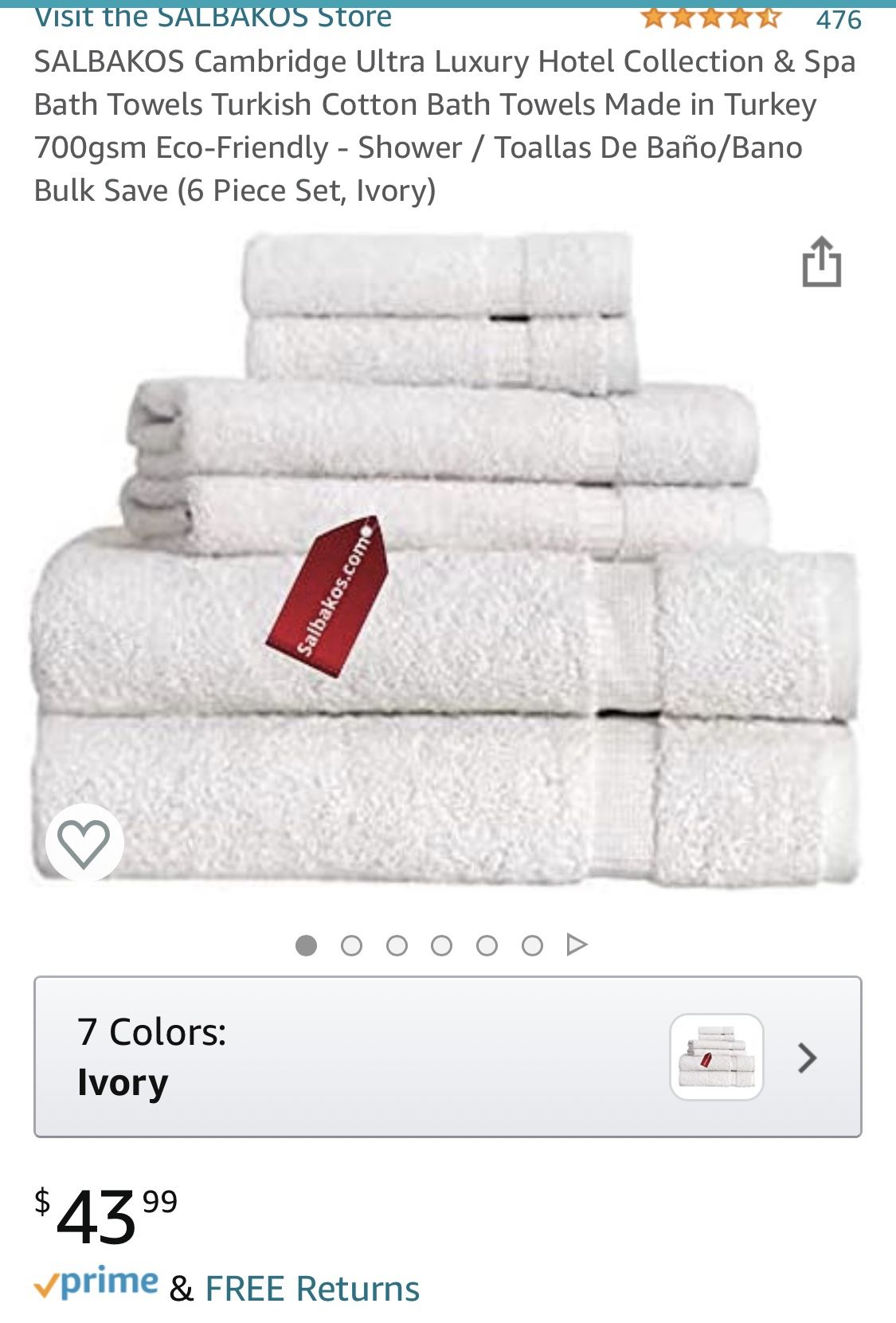 Please read the pic descriptions These are brand new towels and never used still wrapped in plastic. Turkish, soft and thick towels. They dry really well. I have 2 white sets and 8 grey sets One set includes (2 bath, 2 hand and 2 wash cloths) At Amazon they are $43.99 plus tax. I’m selling one set for $25. Thanks