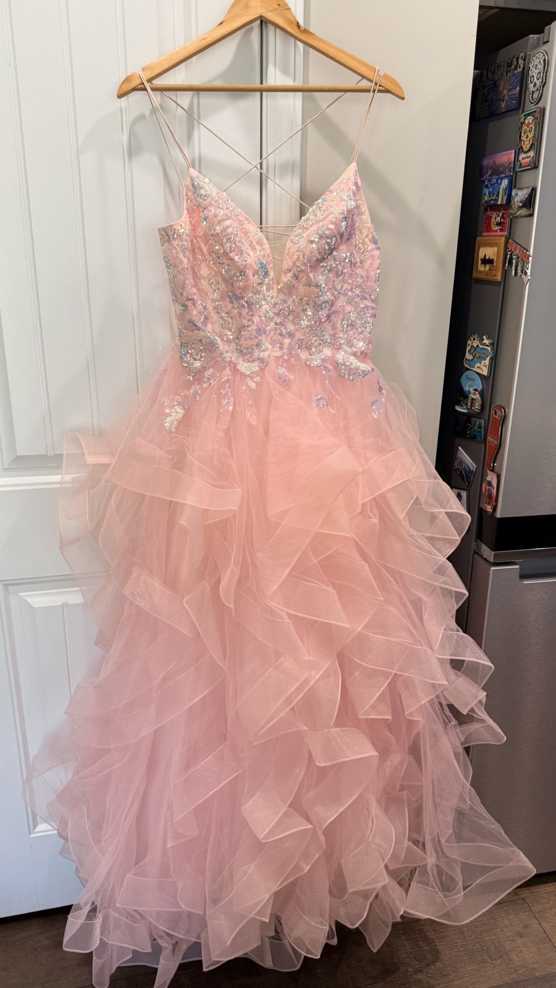 First princess prom dress worn twice original prize $400. I will let go for $200. No damages still beautiful size medium. Second beautiful dress size 12, never worn, but there is no tag no damages still beautiful in the bag. I let go for original prize 150 I’ll let go $80 bucks.