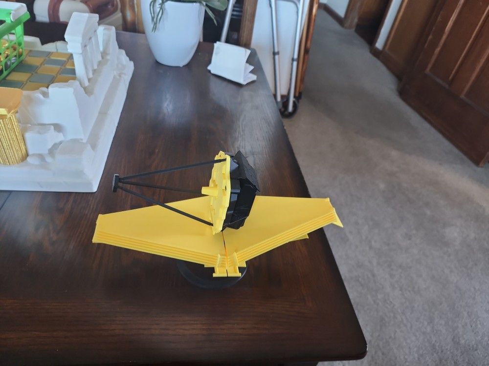 "Handmade 3D printed JWST model—gold mirror, layered sunshield, super detailed! It SPINS . Great for space fans, desk decor, or gifts. Excellent condition, ready for pickup."