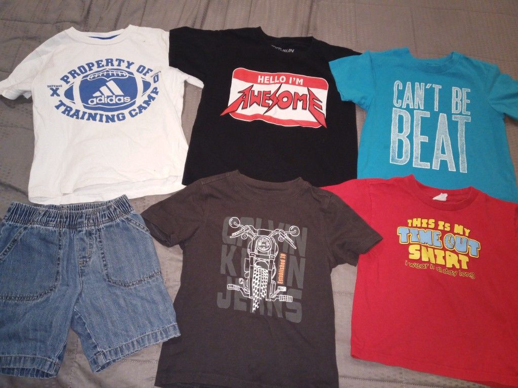 Boy's Size 4T Bundle. The 7 Piece Bundle. Includes: 6 Shirts (1 not shown) 1 pair of shorts. All clothing is named brand and is in excellent condition. Asking $5.00 or best offer.