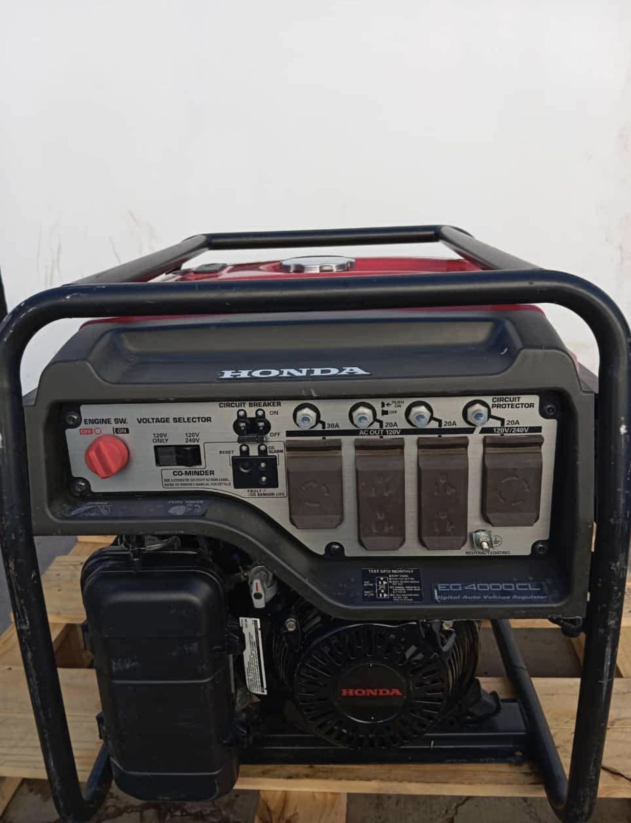 Features include: -4000 watts, 120/240V -Economic, portable power -Long run time - up to 14.8 hours -CO-MINDER: advanced carbon monoxide detection system Advanced technology for consistent power and performance -The EG4000 uses Honda's exclusive DAVR (Digital Automatic Voltage Regulator). The DAVR is designed to hold the voltage stability within a +/- 1% range during operation. This provides more consistent power. Powerful Honda commercial OHV engine -Legendary Honda commercial-grade OHV engines are reliable, easy-to-start and incredibly rugged. 120/240V Selector switch - More usable power, more flexibility -Choose between using both 120 and 240 Volts, or 120 Volts only. This allows for the total generator output to be available through any of the 120 volt outlets, limited only by the capacity of the individual outlet. This enables you to power units with larger wattage requirements. Runs 15.7 hours @ 50% load (6.3 gal.) -Keeps you working, all day long. 3 year commercial/residential warranty -You can rest easy, knowing your generator is covered from top to bottom for 3 full years. Protected by Honda Oil Alert® -Protects the generator by shutting the engine off when low oil is detected. Tough one-piece welded frame -Helps protect the generator. GFCI protection -The EG4000 offers 2 duplex outlets with GFCI protection. -Electronic ignition -USDA-qualified spark arrestor/muffler Electronic circuit breakers -Protects the generator from being overloaded.