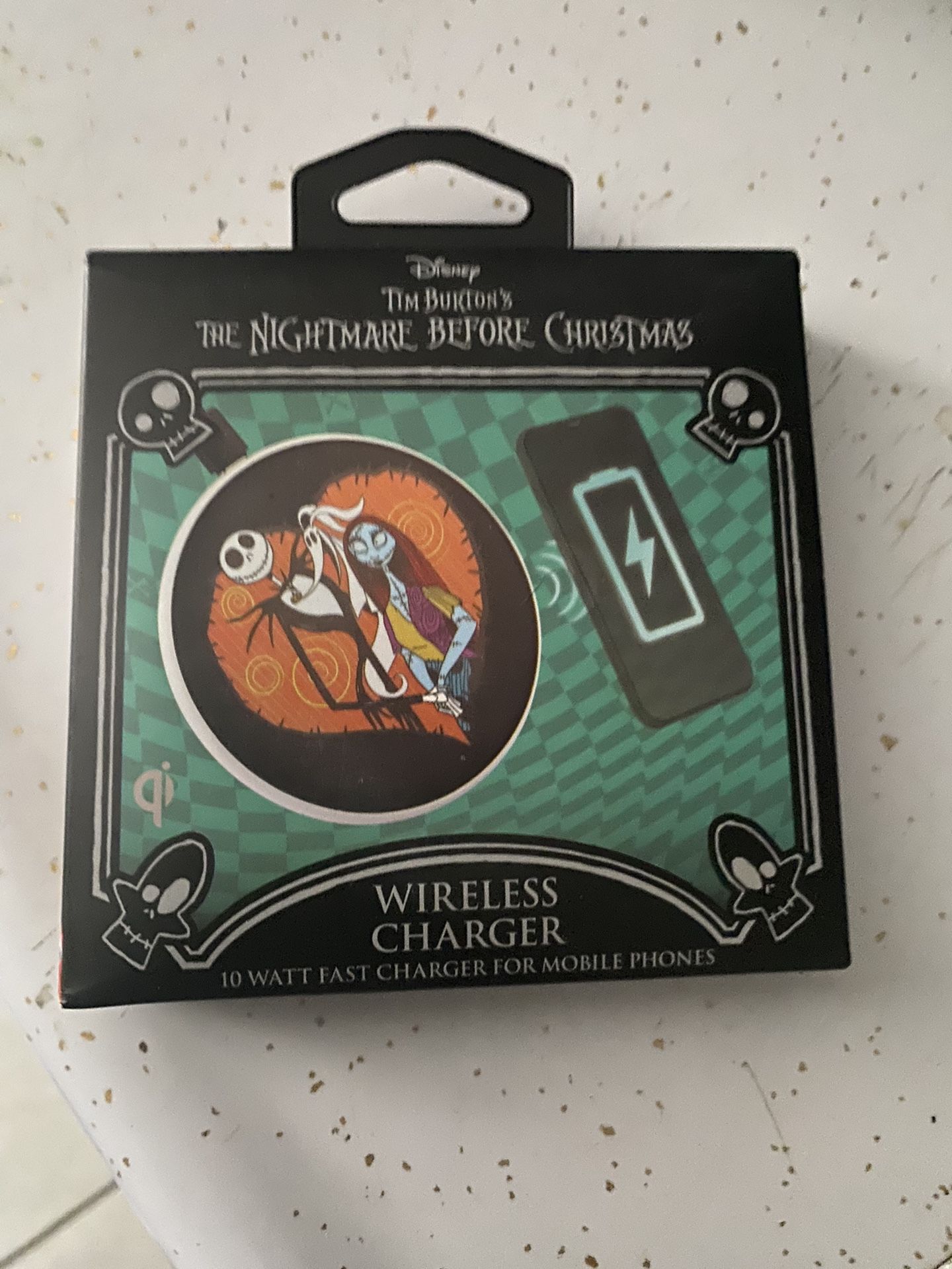 BRAND NEW, nightmare before Christmas wireless charger! NEVER OPENED, STILL SEALED. comes with micro usb cable, LED charging indicator and charges your device in 3 hours or less, and look at pictures and to see if it’s compatible for your device, asking $15 firm on price, and check out my page to see anything else you might like