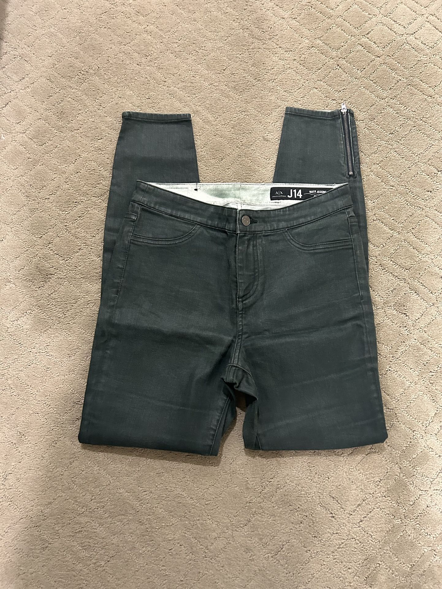 Armani Exchange moto jegging woman Deep Green Skinny Jeans size 29 Sleek and modern design. Ideal for casual wear. Premium quality fabric. Featuring ankle zipper, back pockets, belt loop, back logo, skinny fit Excellent condition Bin 5