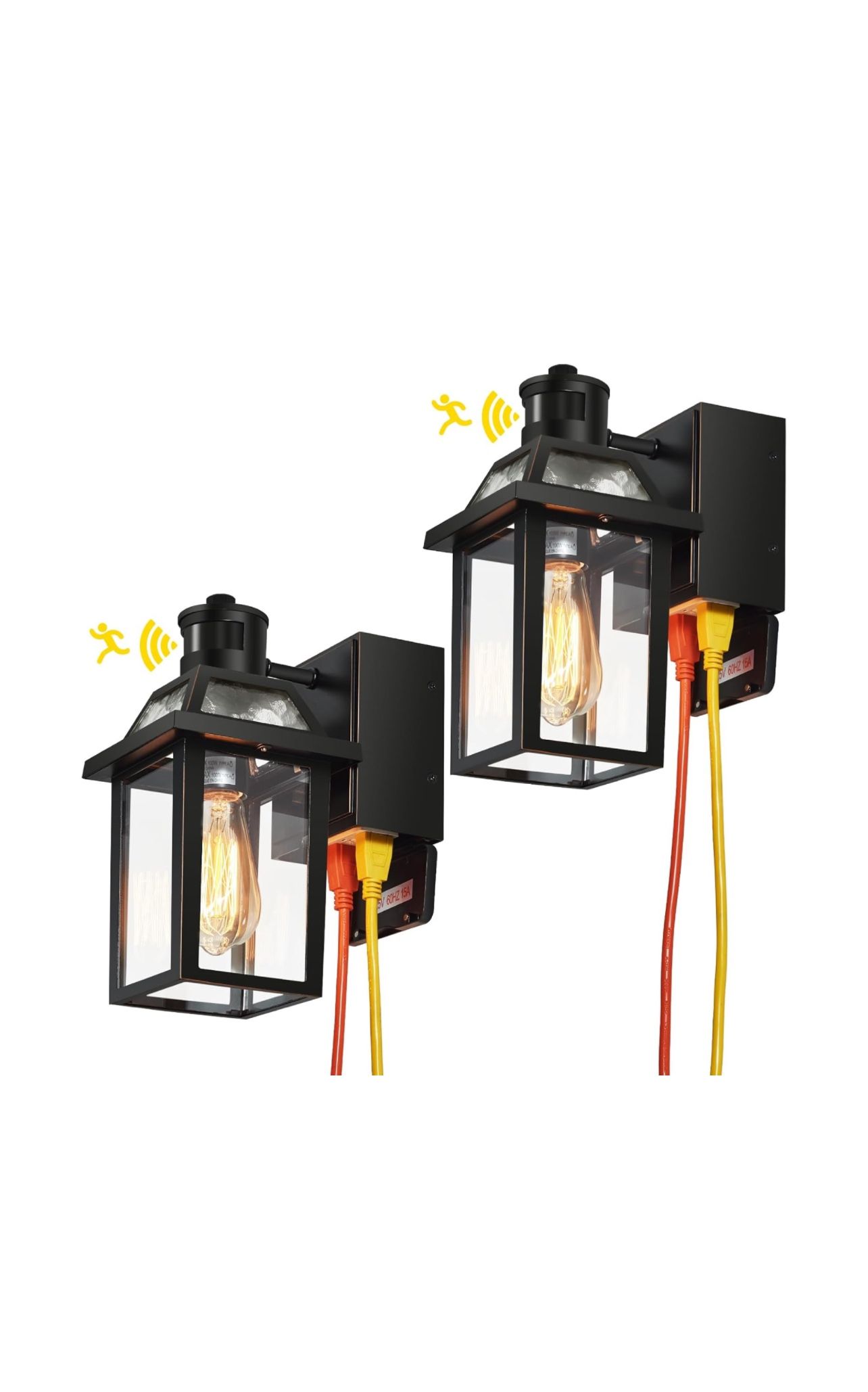 2 Porch Lights with GFCI Outlet, Dusk to Dawn Motion Sensor (New in Box)