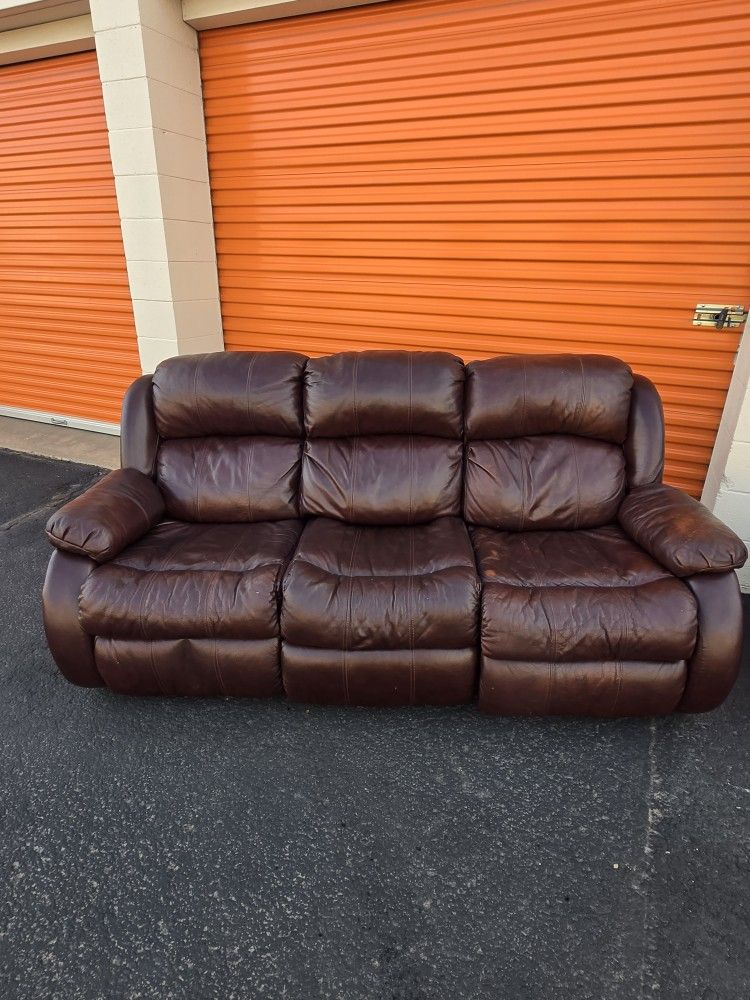 I have this set of 4 leather couches. 1 couch, 1 love seat, and 2 recliner chairs. All of the pieces are Recliners and work well. The leather on all of these is in good shape. The only thing is some discoloration on some but no rips or tears on the leather. The small recliners are 34 in x34 inch, the love seat it 60x34 inch, and the couch 84x 34 in. 400 obo!