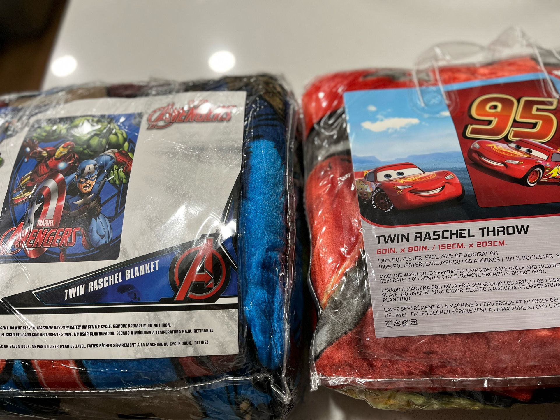 Twin throw blankets, Marvel Avengers and Disney Pixer Cars $30 EACH