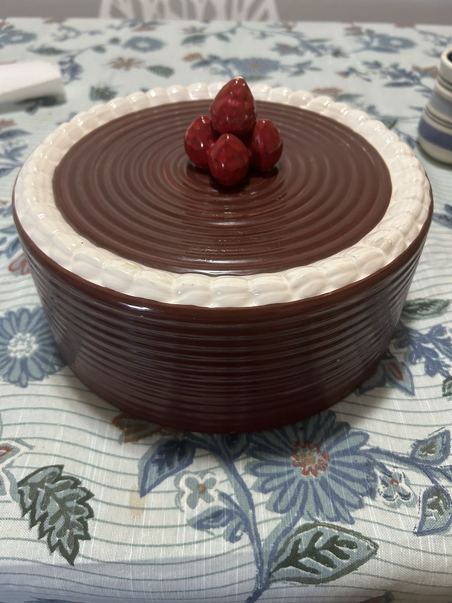 Hand painted ceramic cake dome. Small chip on the cherries.
