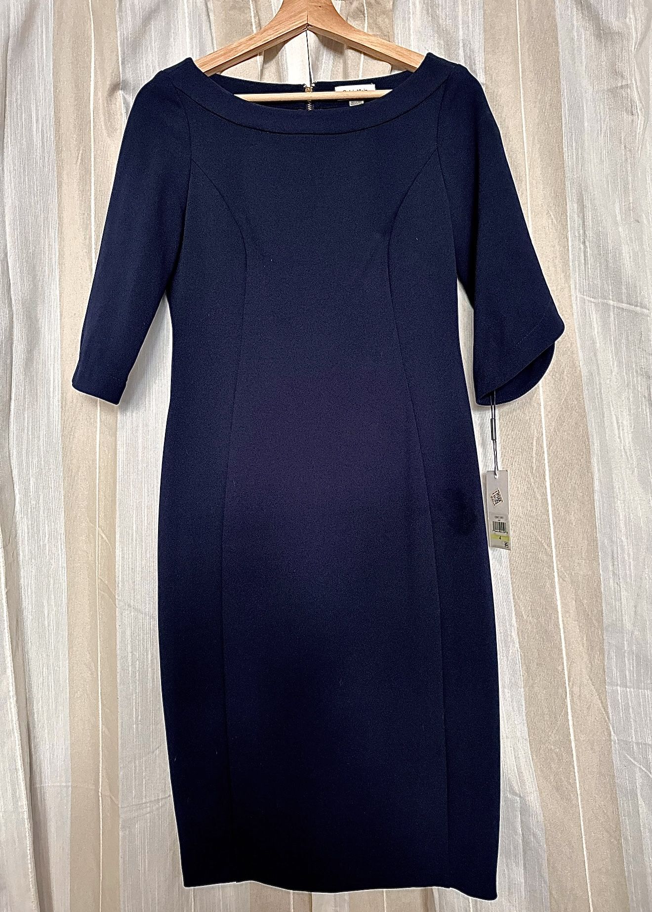Calvin Klein - Blue Knee high dress w back zipper closure - New w/ tags -Size 4- Fits up to Medium- stretchy Fabric