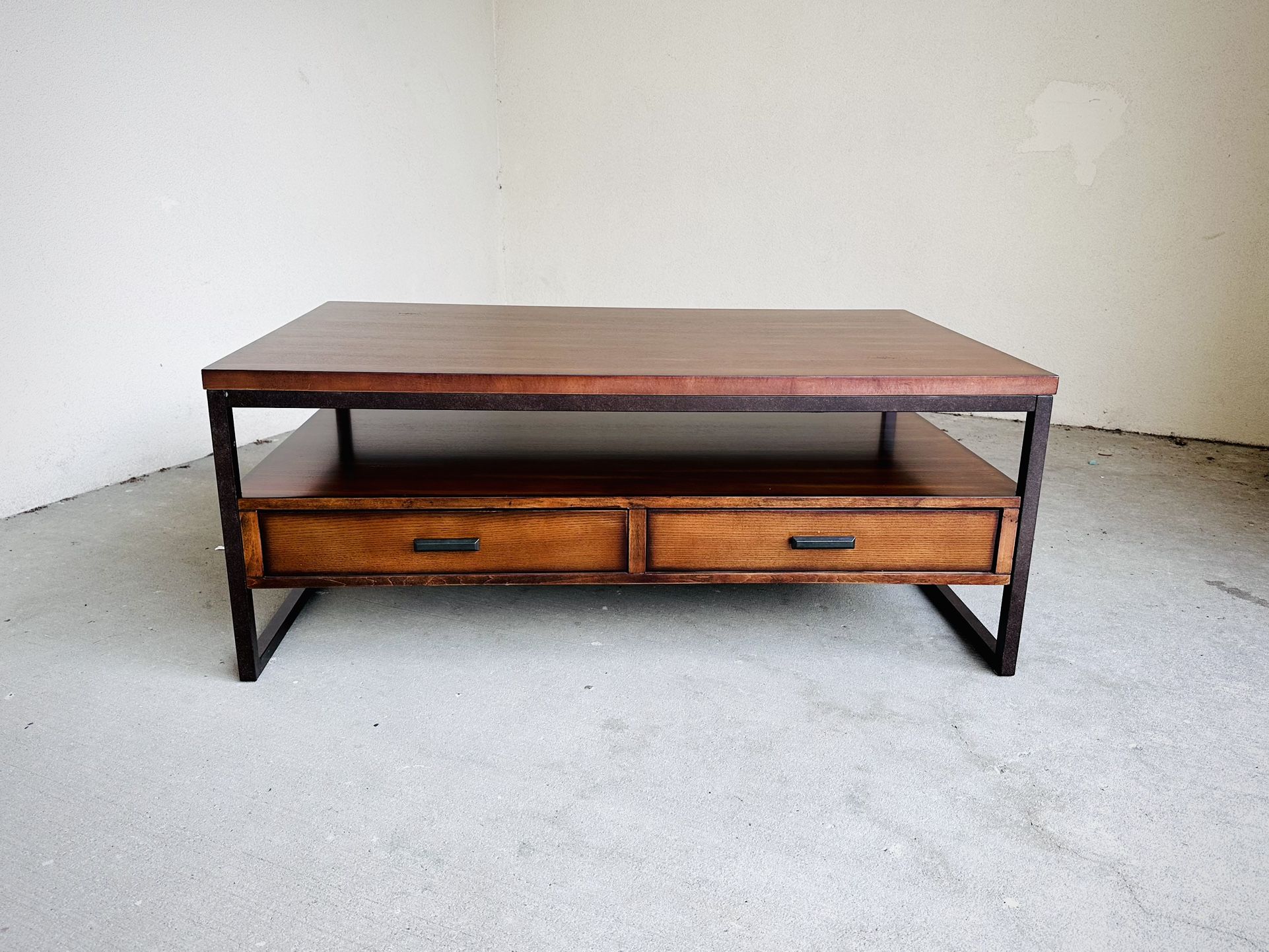 Combination of wood and metal, has two drawers and a shelf for storage. Top is 48”x28”, 19” high. PLEASE CHECK OTHER ITEMS IN MY PROFILE. CERTAIN DISCOUNTS APPLY FOR BUNDLES: 2 lots 10% OFF, 3 lots 15% OFF, 4+ lots 20% OFF.