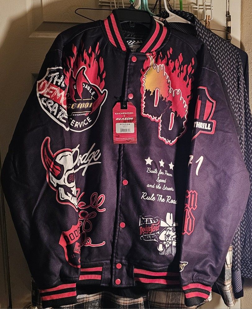 Dodge x Reason Men's Varsity Bomber Jacket Limited Edition Demon Size Large NEW!!!