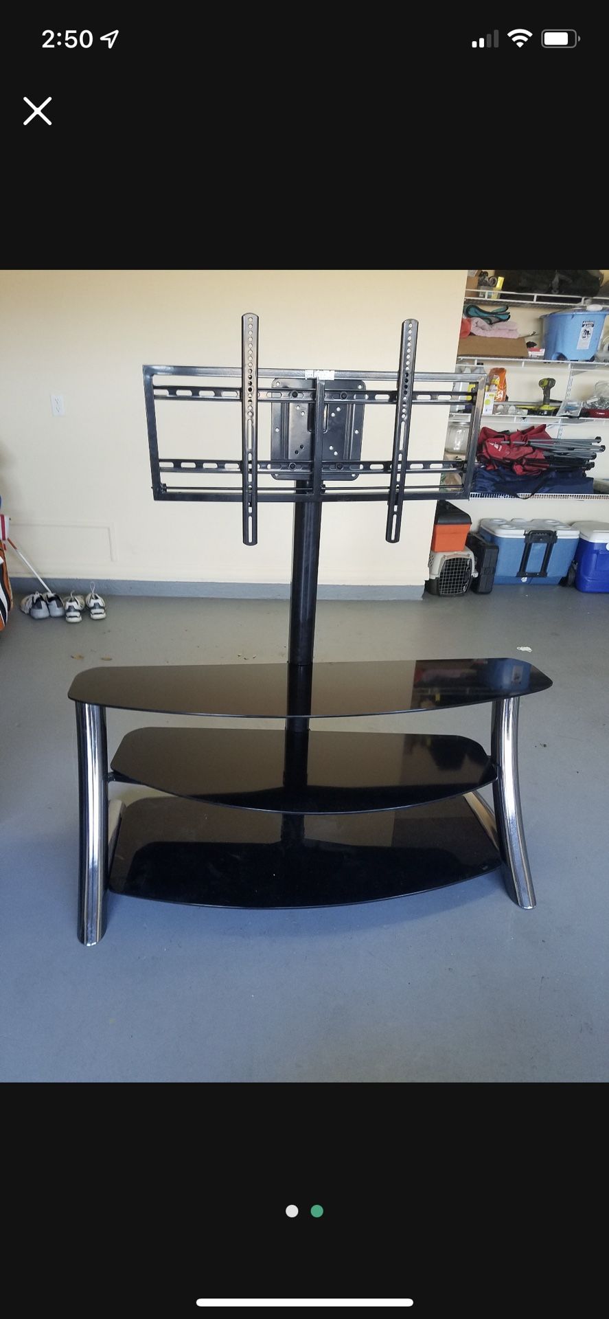 Tv stand with glass shelves. Can hold up to 60” tv. Has all of the parts. Offer is firm.