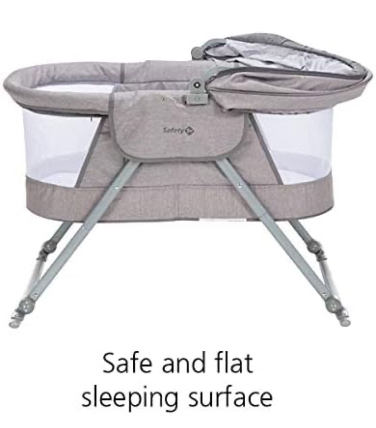 Brand New Product Dimensions 24.5"L x 16.8"W x 7.6"H Portable rocking bassinet is perfect for day trips or weekend travels Lays flat and rocks side to side to gently lull baby to sleep Retractable canopy for sunshade can be removed completely