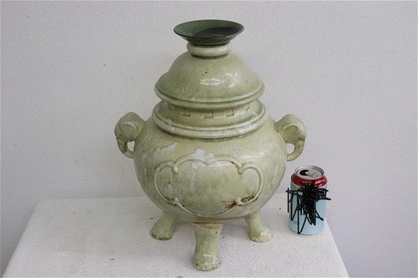 A light green glazed large tripod censer (15.65"x13.2"x10.8"