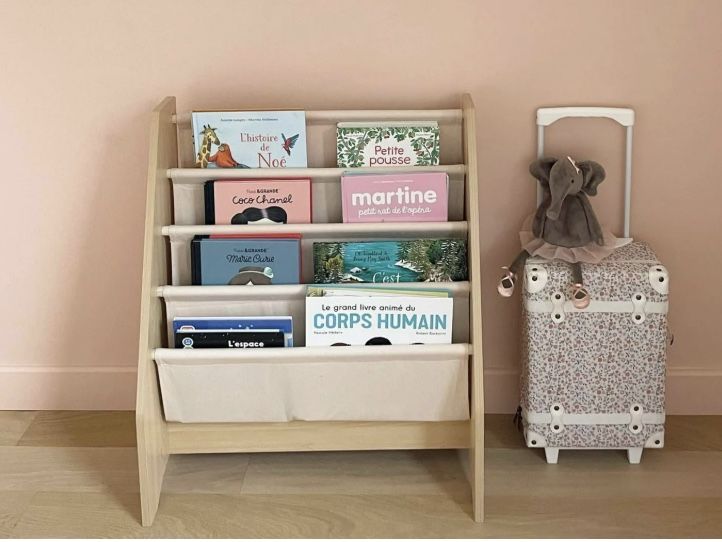 Kidkraft Wood And Canvas Primary Sling Bookshelf For Kids