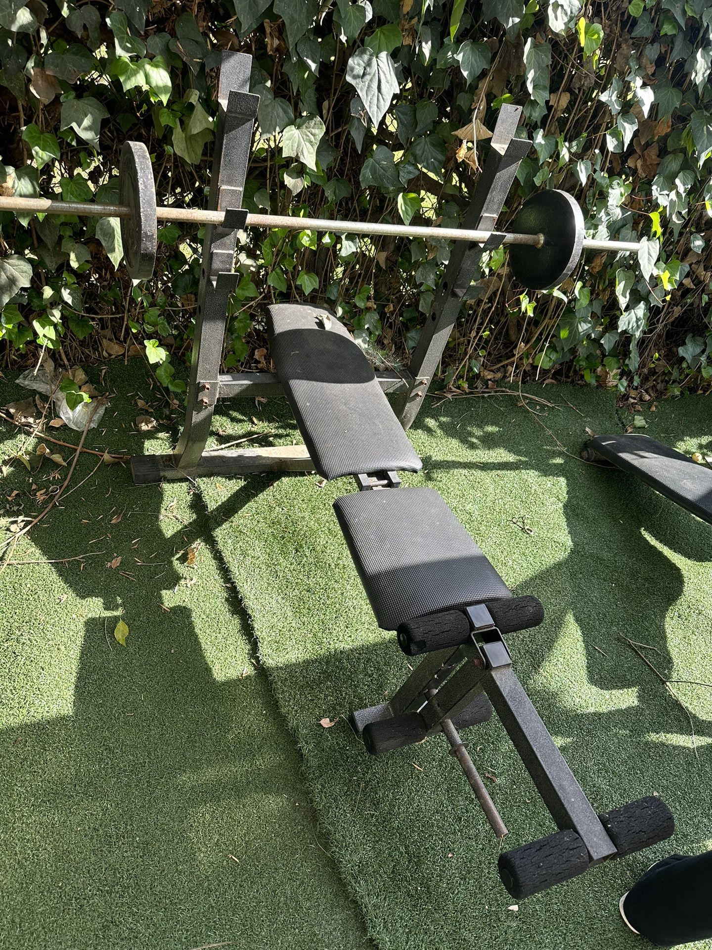 Have 2 benches for sale take both for $80 plus 2) 25lb and bar