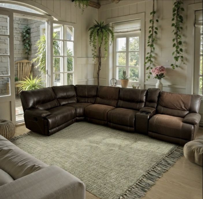 Up for sale is a beautiful and incredibly comfortable dark brown leather sectional sofa. Perfect for a home theater, man cave, or a spacious living room. This is a modular set, so you can arrange the pieces to fit your space. Key Features: • Material: High-quality leather (durable and easy to clean). • Functionality: Multiple power reclining seats for ultimate comfort. • Storage: Built-in center consoles with storage compartments for remotes and snacks. • Convenience: Integrated cup holders on both consoles. • Condition: Excellent used condition. No major rips or stains. All reclining mechanisms work perfectly. Approximate Dimensions: • Total Length: ~125 inches (Length varies based on configuration) • Depth: ~38 inches