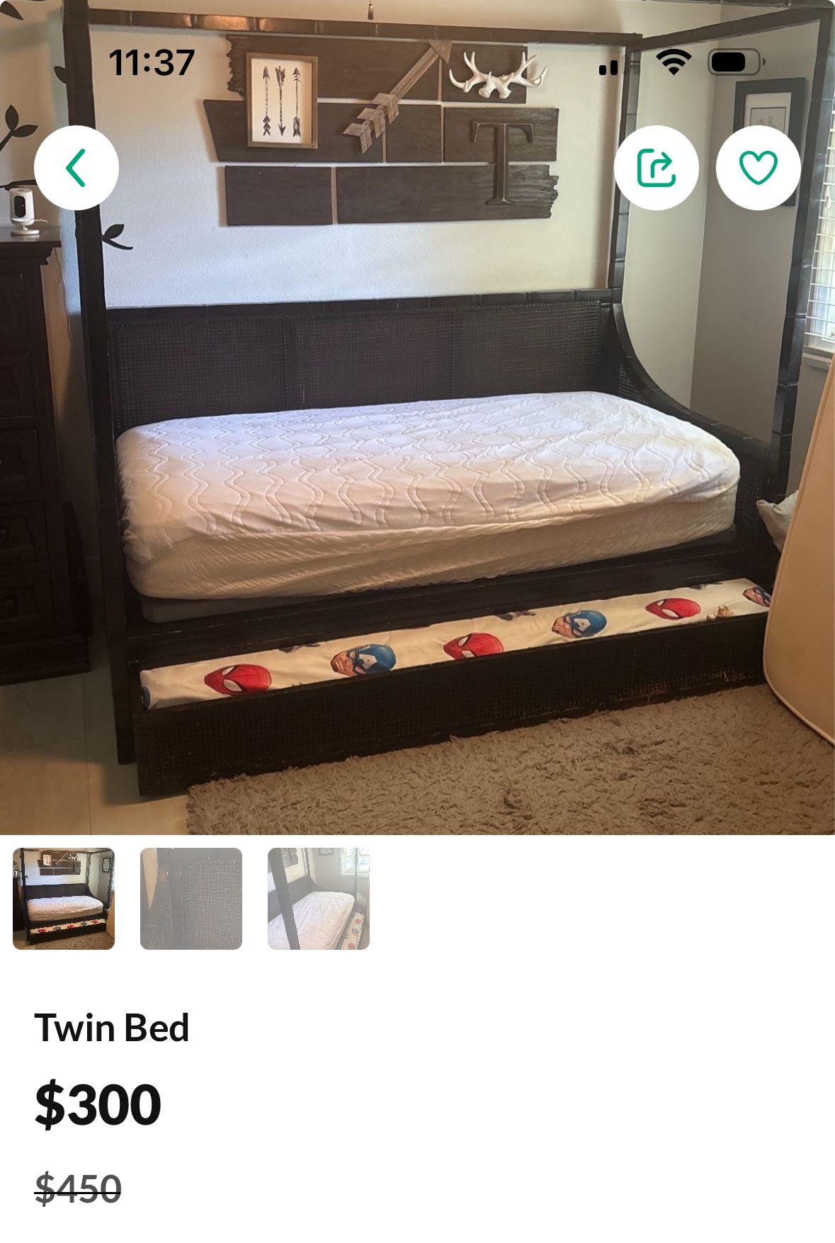 Z gallery wood trundle bed paid over 2000 for it. Selling for a bigger bed. Twin size. Comes with mattresses if wanted! Great deal! Slightly used!