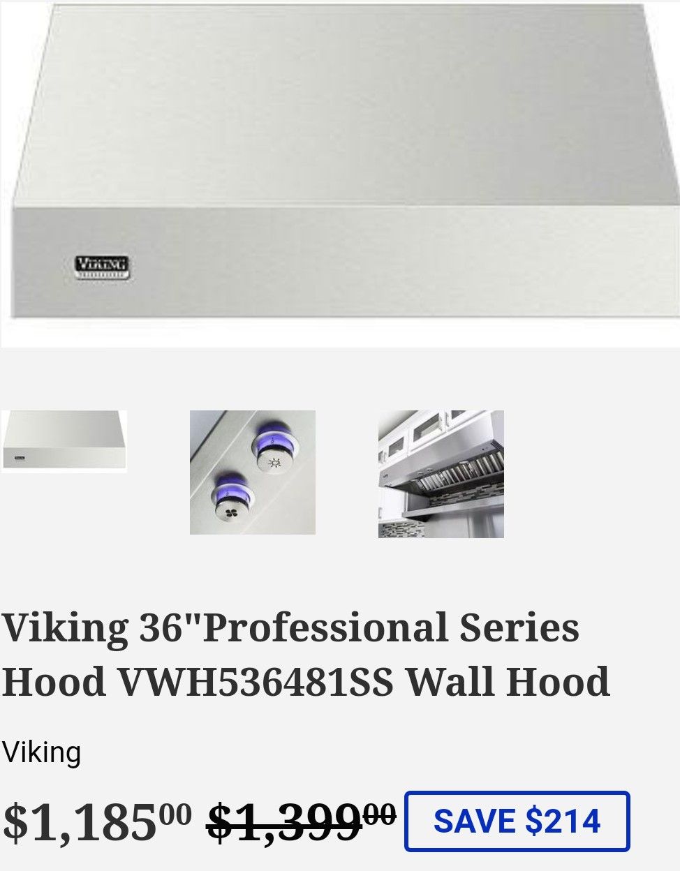 Viking 36"Professional Series Hood VWH536481SS Wall Hood