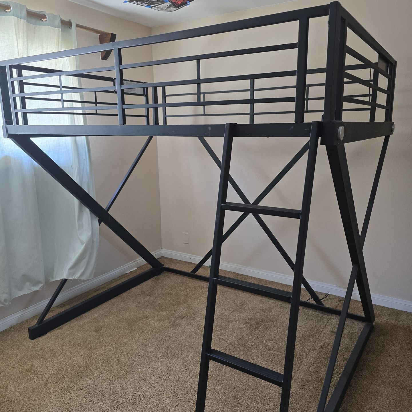 Black metal full size loft bed. Already disassembled, comes in 8 pieces. $180 OBO