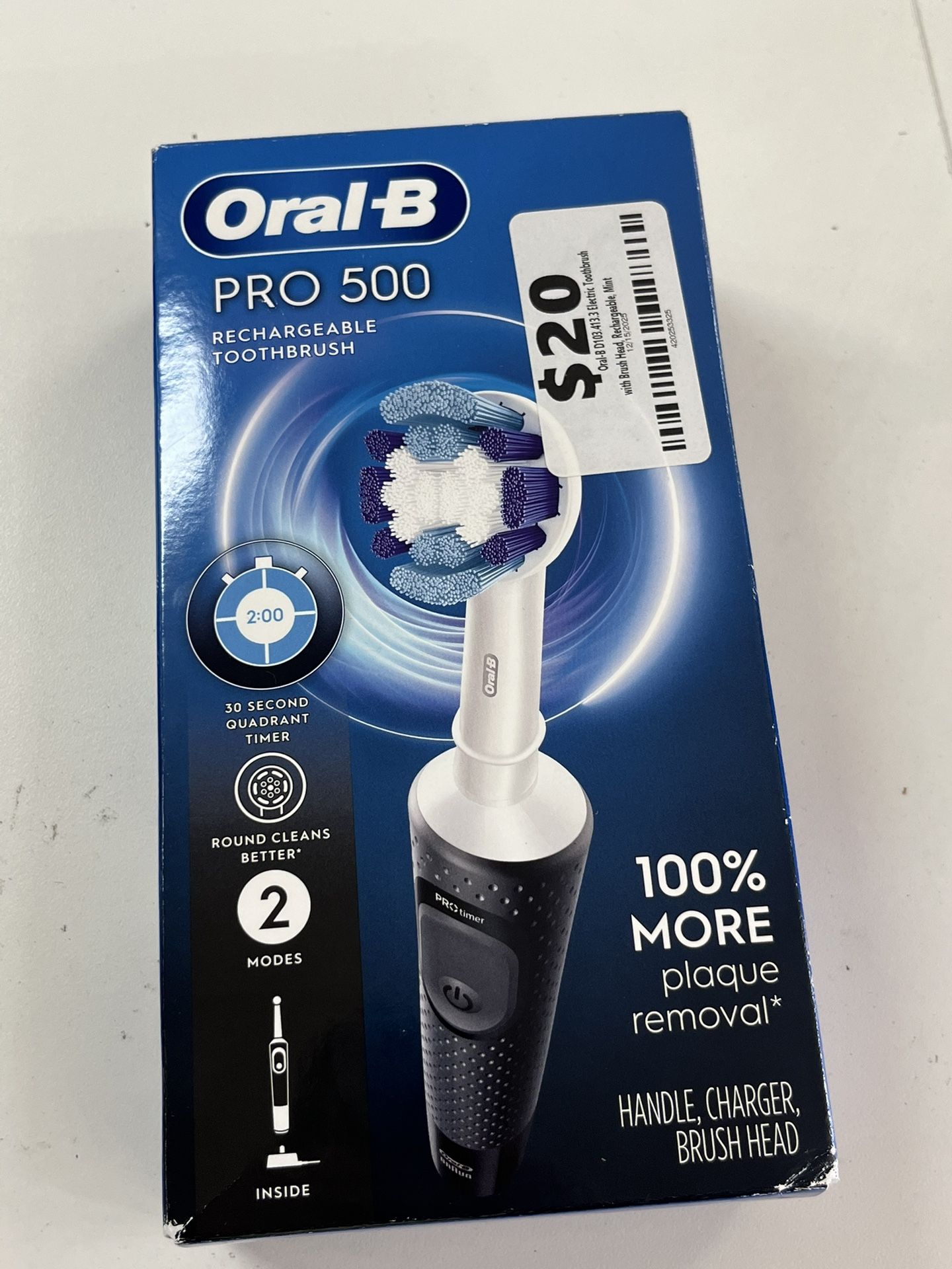 Oral-B Pro 500 Rechargeable Electric Toothbrush, Black, 1 Count, Adults and Children 3+