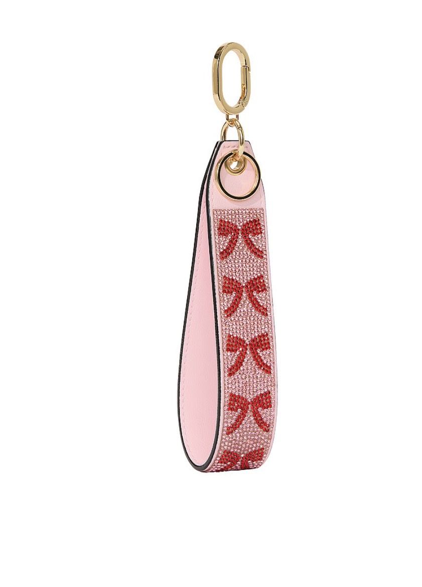 Victoria's Secret VS Bling Rhinestone Wristlet Strap Keychain Pink Bow Logo New