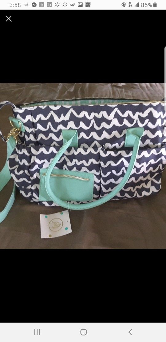 Mint green and navy blue diaper bag. I took the tags off and used it briefly, but still EXCELLENT condition. Has matching changing pad. Unisex Check out my other items for sale. I meet at the Walgreens at 6503 W Waters Ave, Tampa, FL 33634