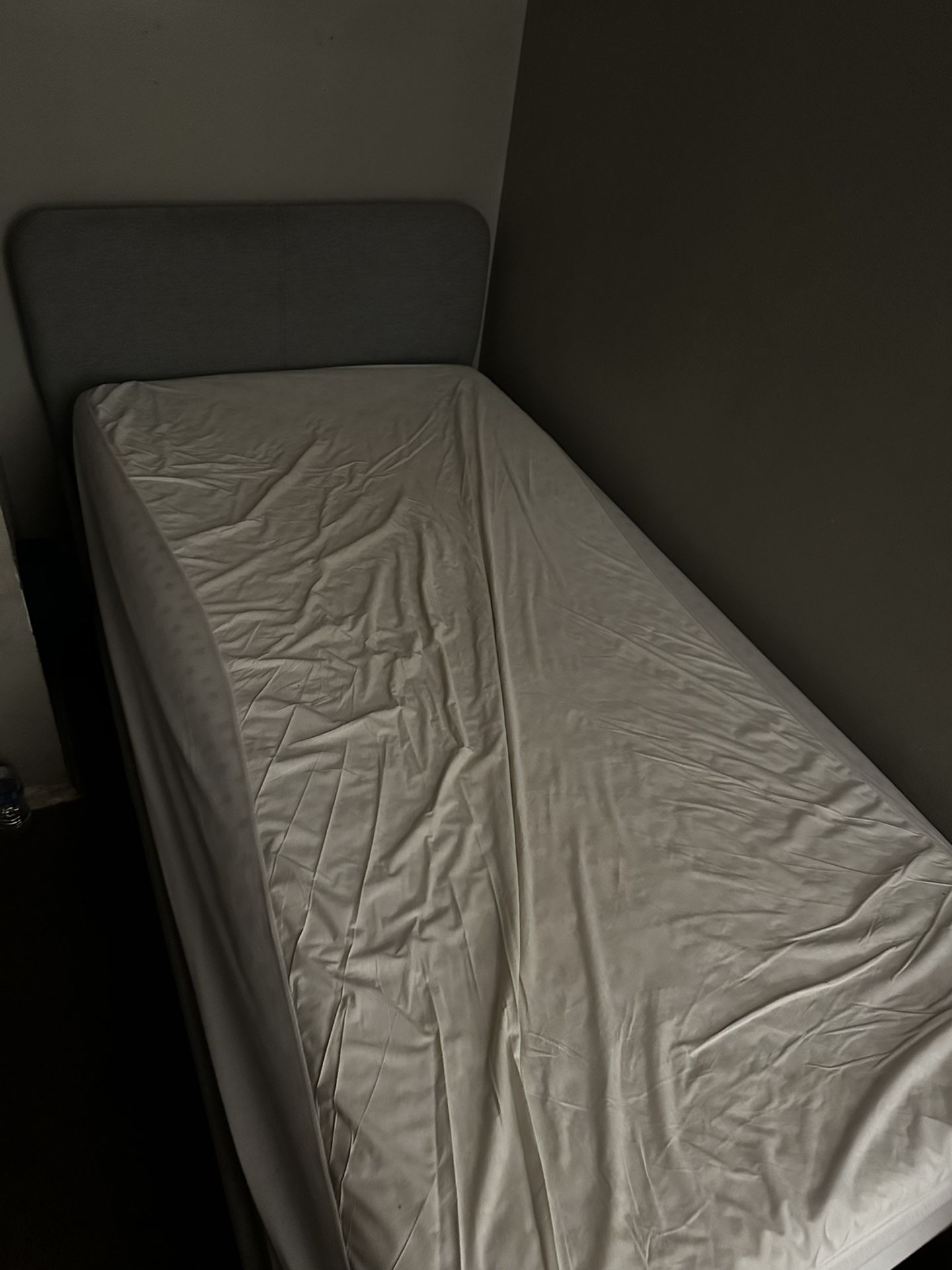 Twin bed mattress and bed frame. Includes both of them or purchase separately. Mattress cover.