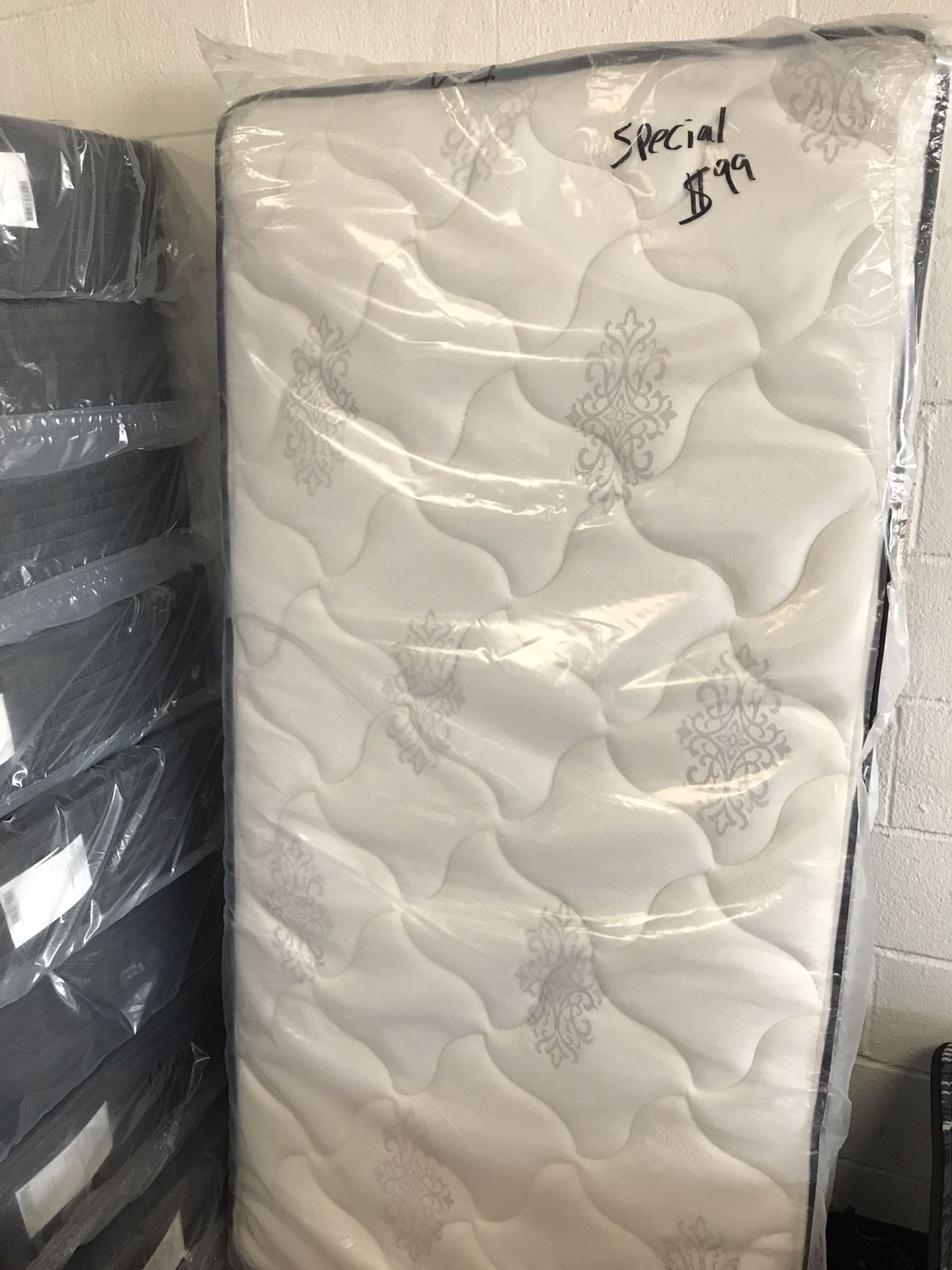 Brand new twin mattresses starting at $99. Tax refund sale happening right now! Stop by and see us today at 2829 Raeford rd Fayetteville