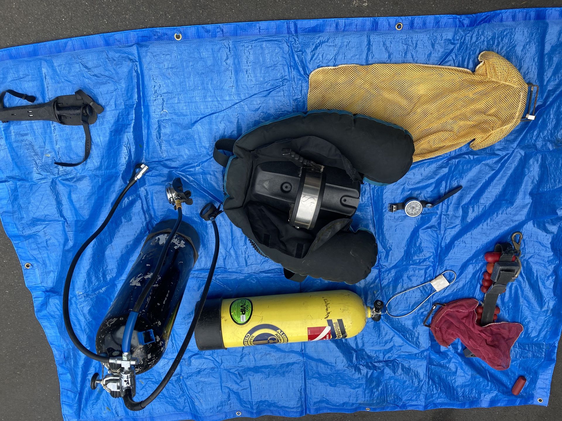 Tanks regulator BC Pack weights goody bags . Tanks need to be Hydro tested regulator and buoyancy. Compensator need to be gone through professionally..