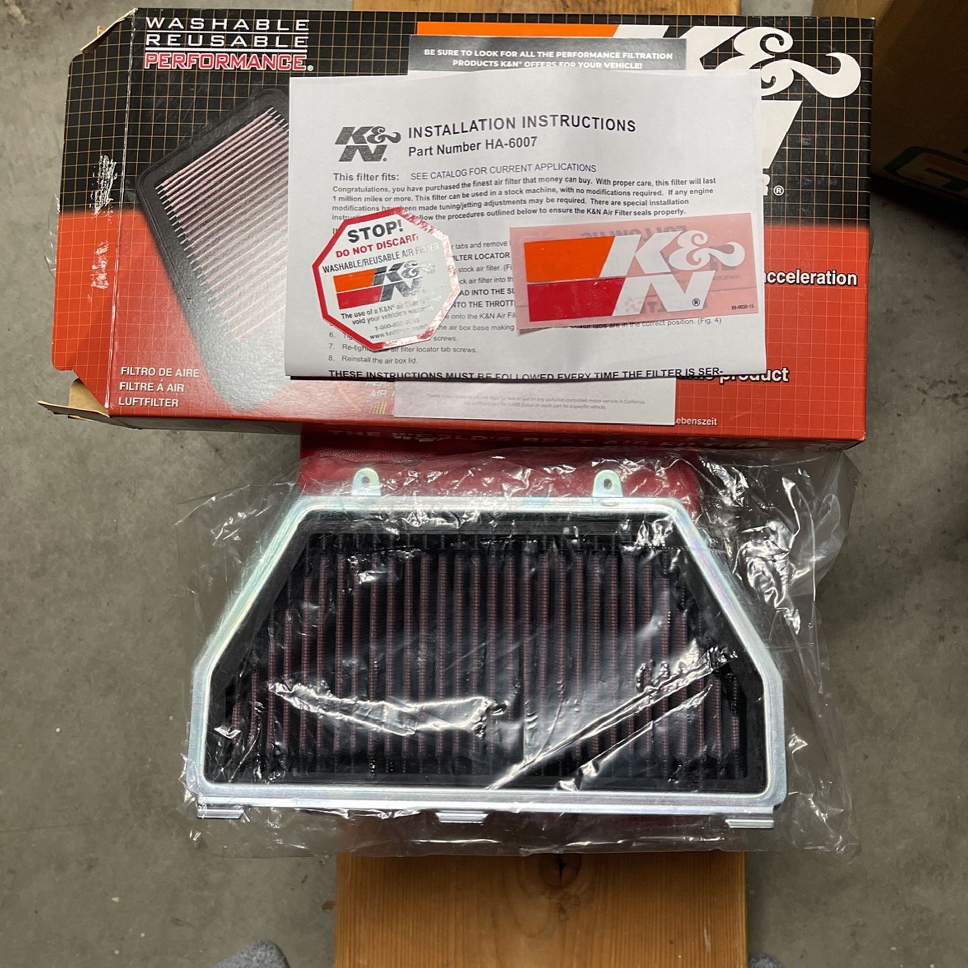 2009-2012 K&N air filter Honda 600RR I took it out of the box and placed the frame on it then realized it won’t fit the bike. So I put it right back in the box it is brand new. Still has sticker, paperwork and original box.