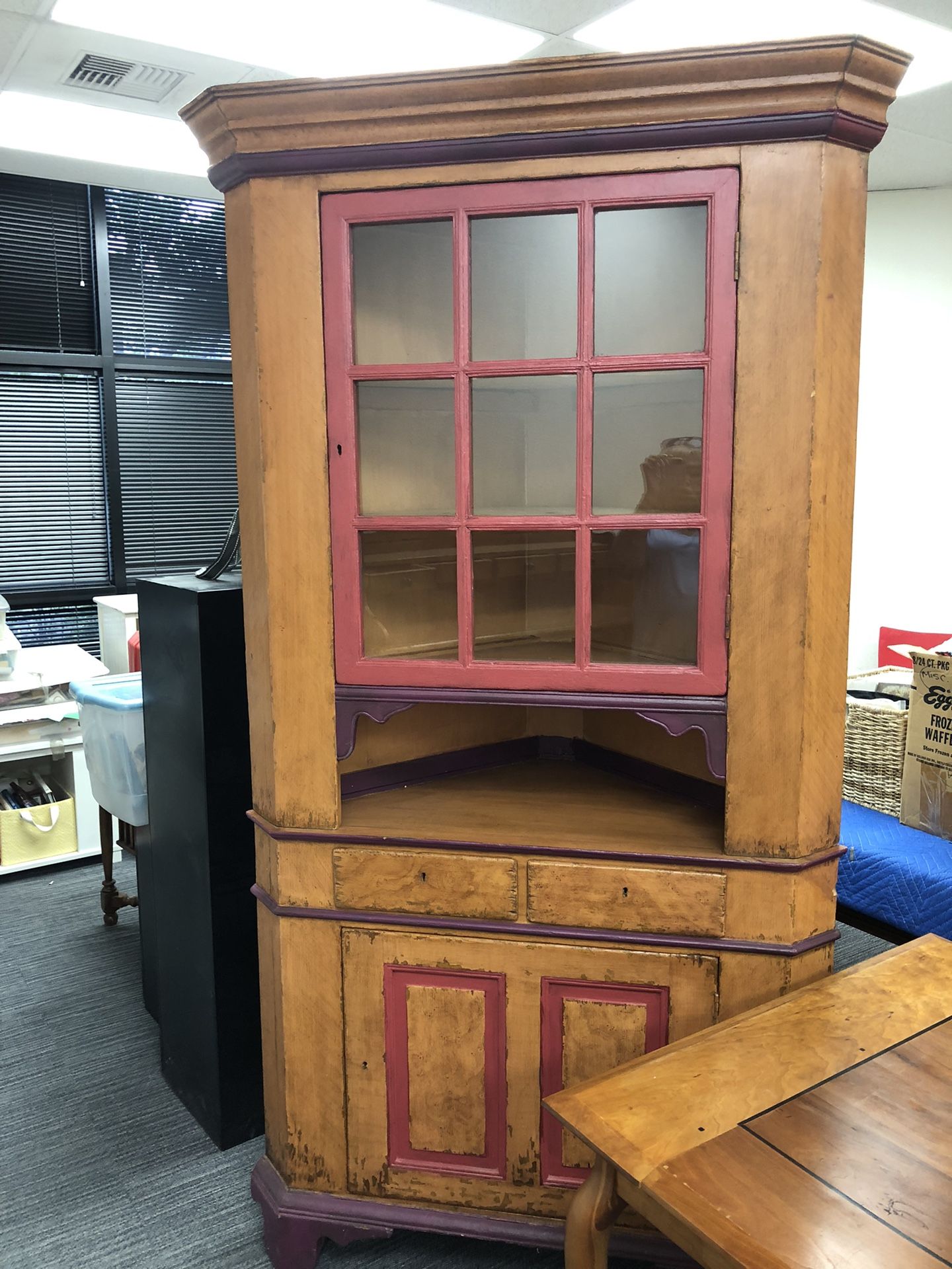 Beautiful corner armoire. Great condition. Perfect addition to kitchen, dining area or living room